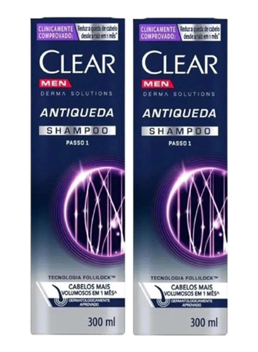 Kit 2 shampoo Clear Men Derma Solutios Antiqueda 300ml
