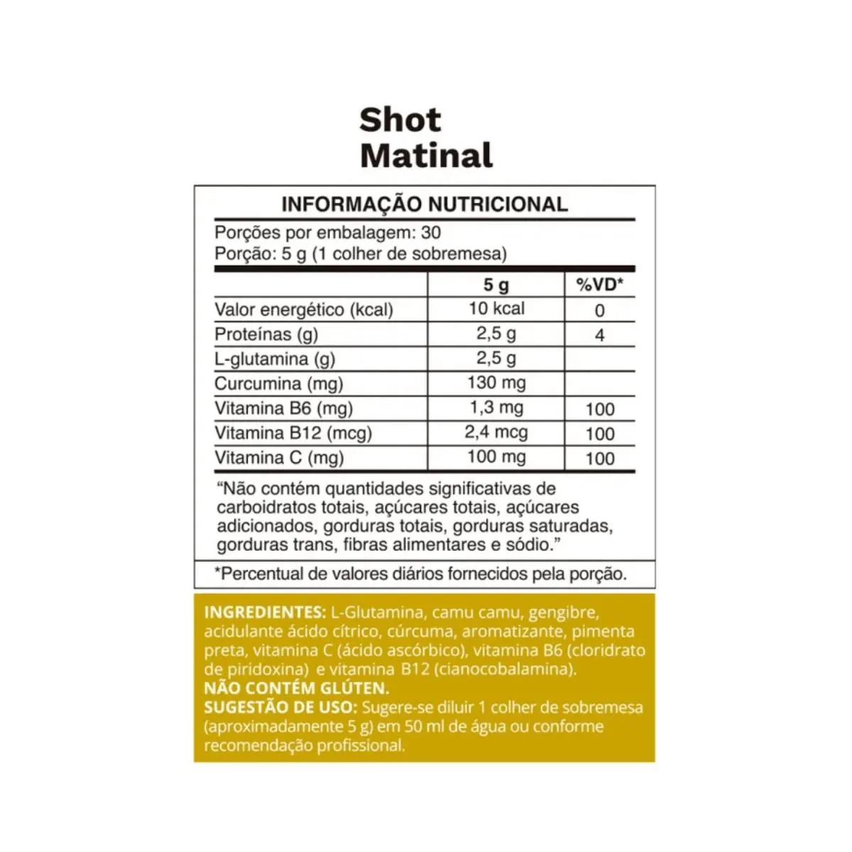 Também estão presentes na composição do Shot Matinal da Ocean Drop: glutamina, camu camu, gengibre, cúrcuma e pimenta preta.