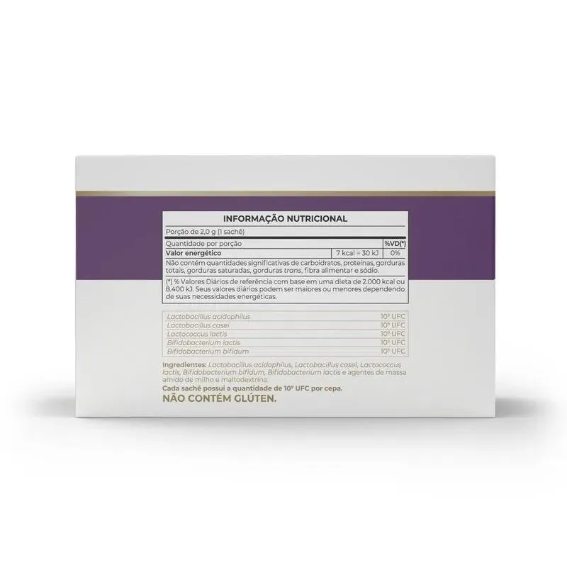 - Contém 5 cepas probióticas resistentes ao pH gástrico.