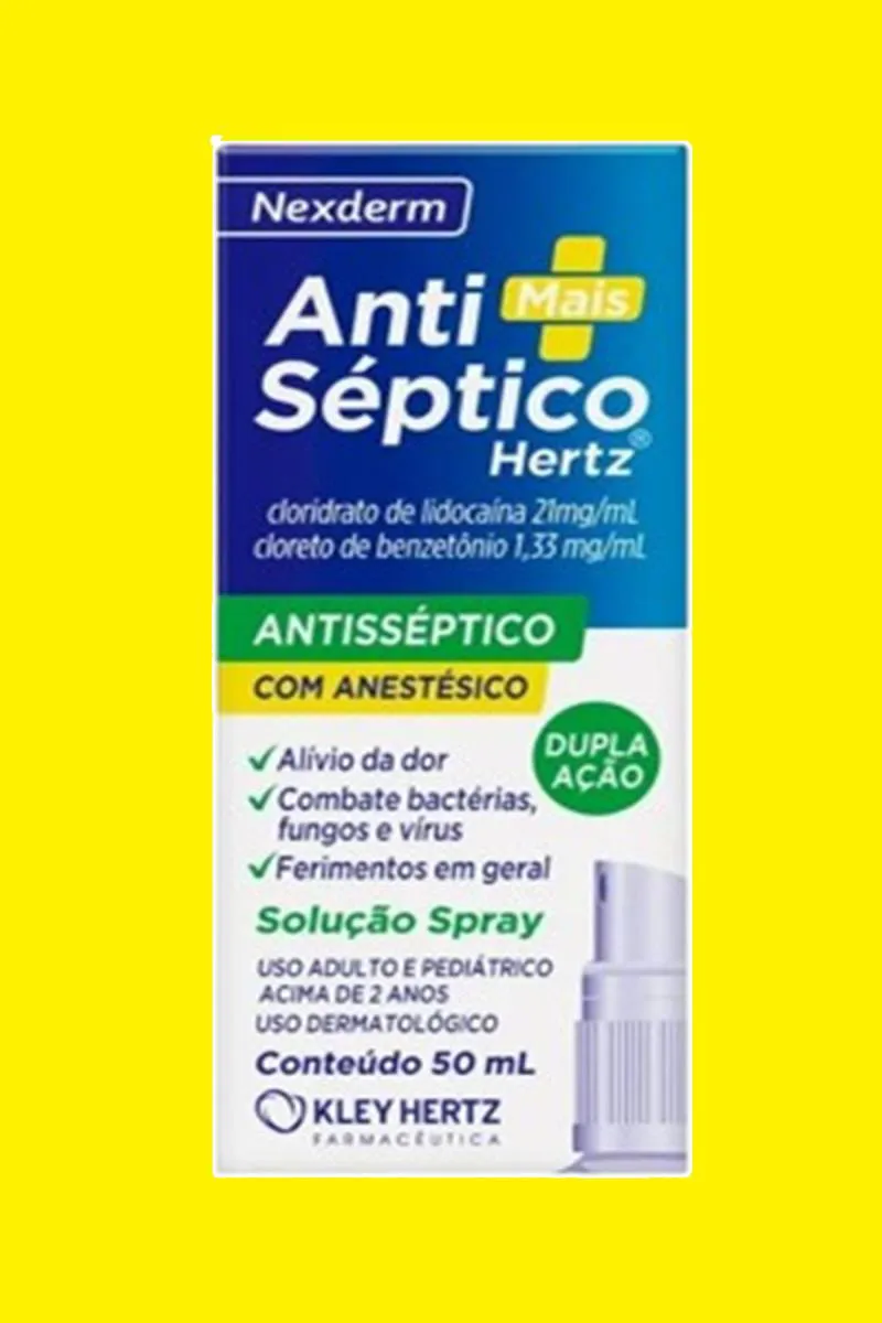 O Hertz Antisséptico contém cloreto de benzetônio um antisséptico, que limpa a pele lesionada e combate bactérias e cloridrato de lidocaína, um anestésico local, que bloqueia temporariamente o impulso nervoso, aliviando a dor de pequenos ferimentos ou cortes, arranhões ou pequenas queimaduras. A ação anestésica é obtida poucos minutos após a aplicação, com duração de aproximadamente, 30 a 60 minutos, quando aplicado através de spray tópico.