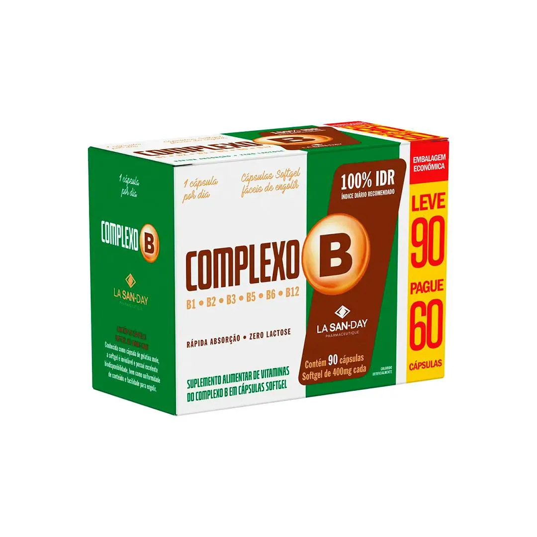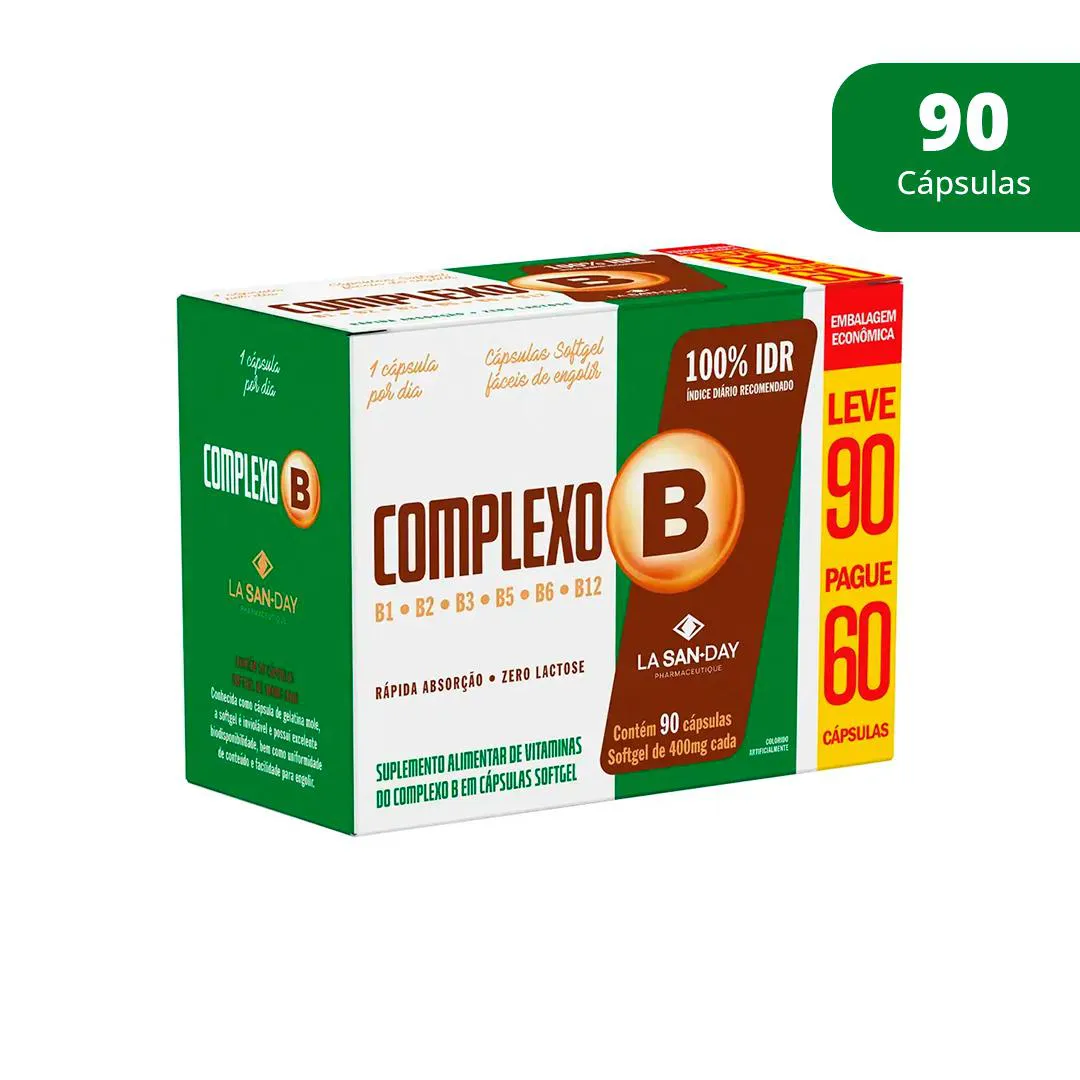 O suplemento Complexo B da La San-Day reúne as principais vitaminas hidrossolúveis do grupo B, com funções essenciais no metabolismo celular.