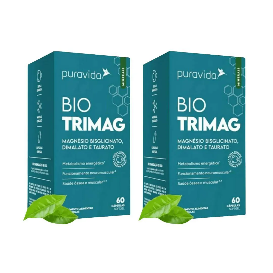 Kit 2 Suplemento Bio Trimag Mágnesio 60 Caps - Puravida