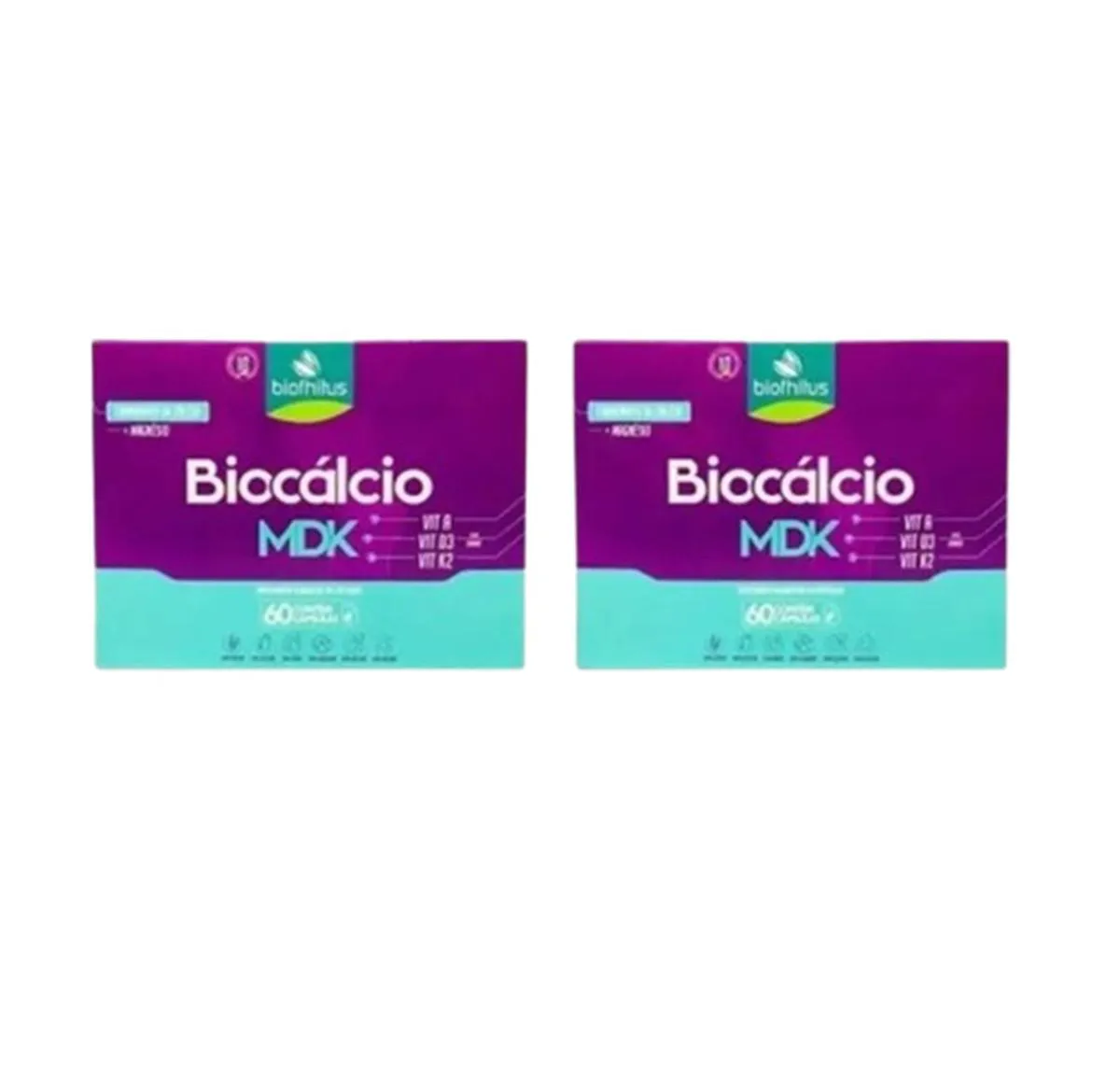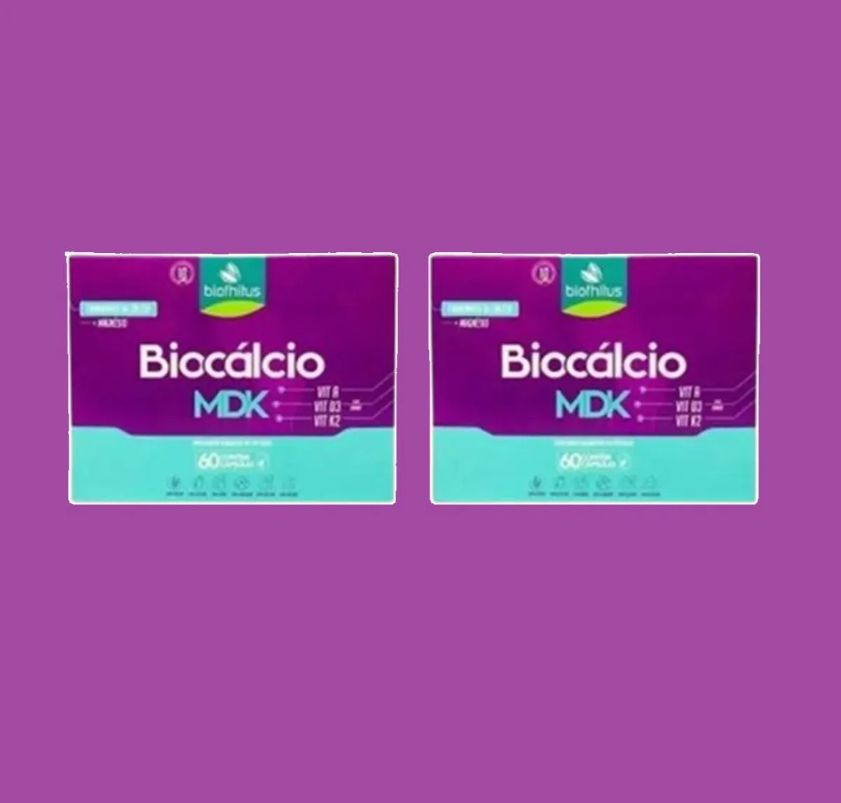 Kit 2 Suplemento Biocálcio MDK Vit A, D3, K2 - 60 Cáps – Biofhitus
