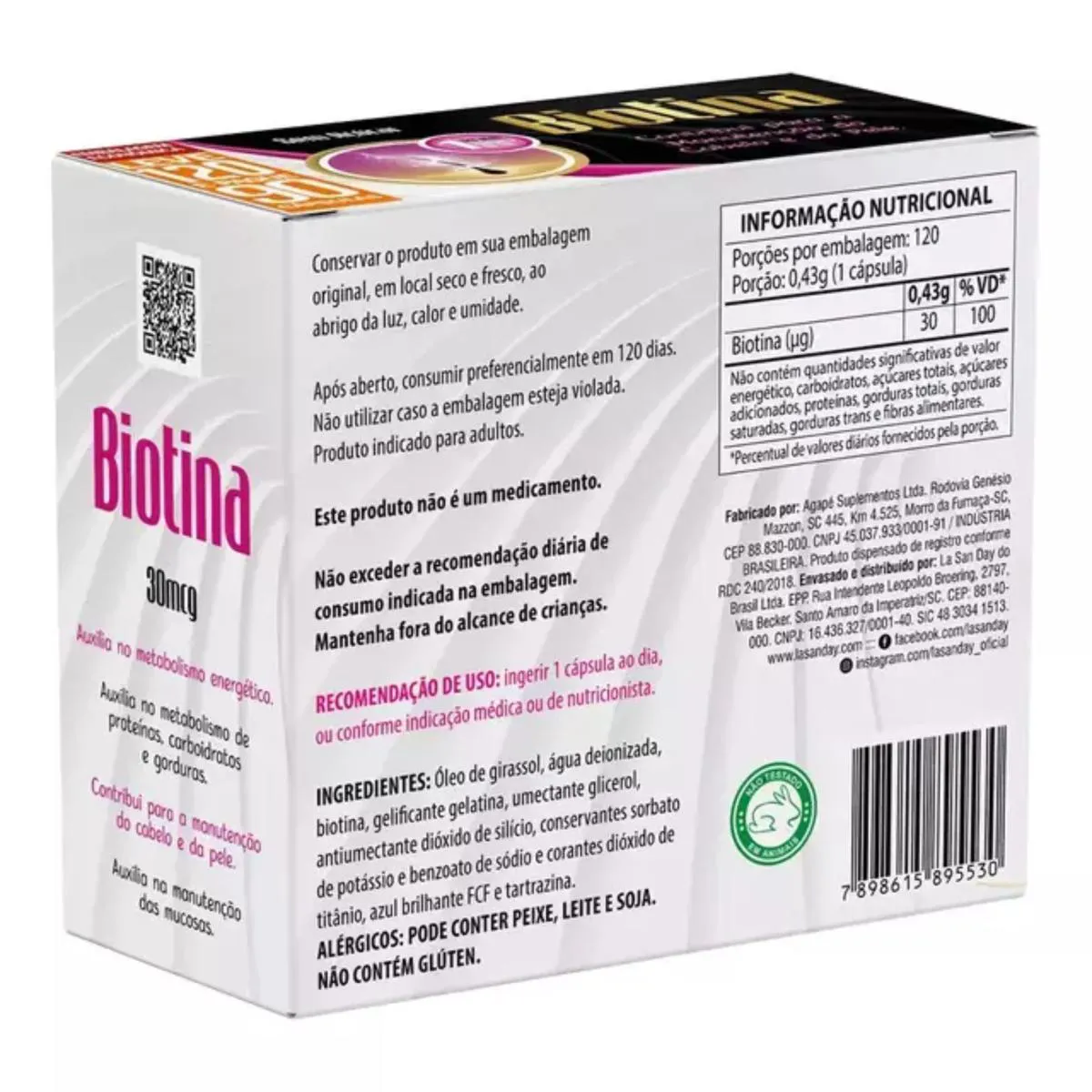 Kit 2 Suplemento Biotina 30Mcg 120 Cápsulas - La San Day