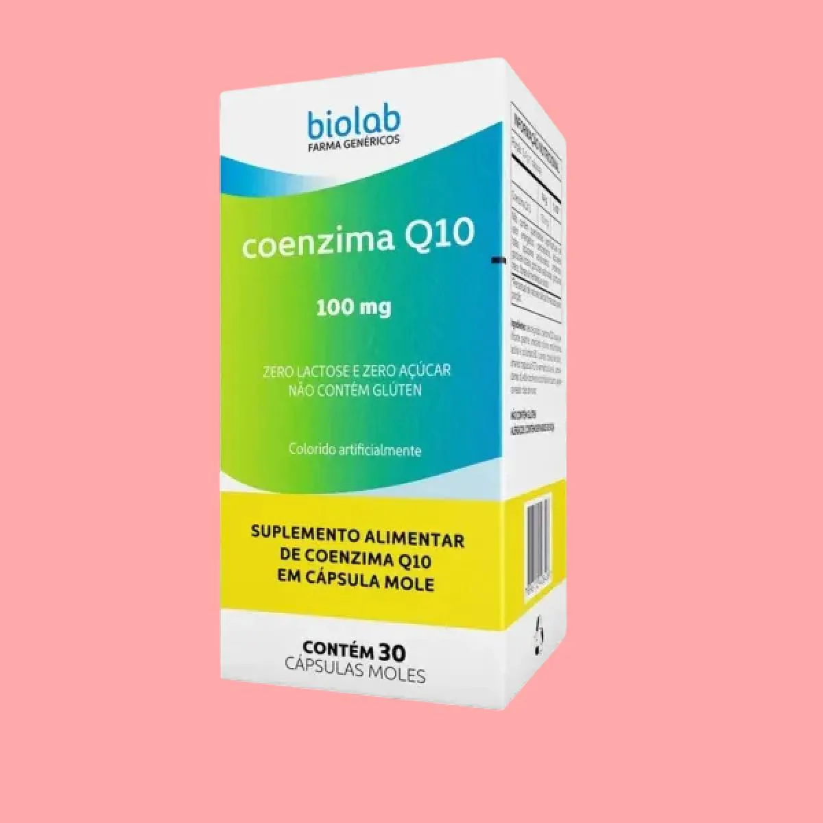- Suplemento de Coenzima Q10 em cápsulas moles.