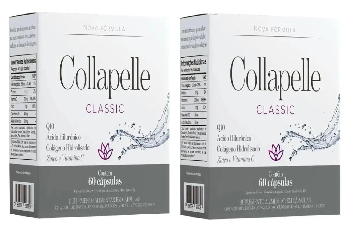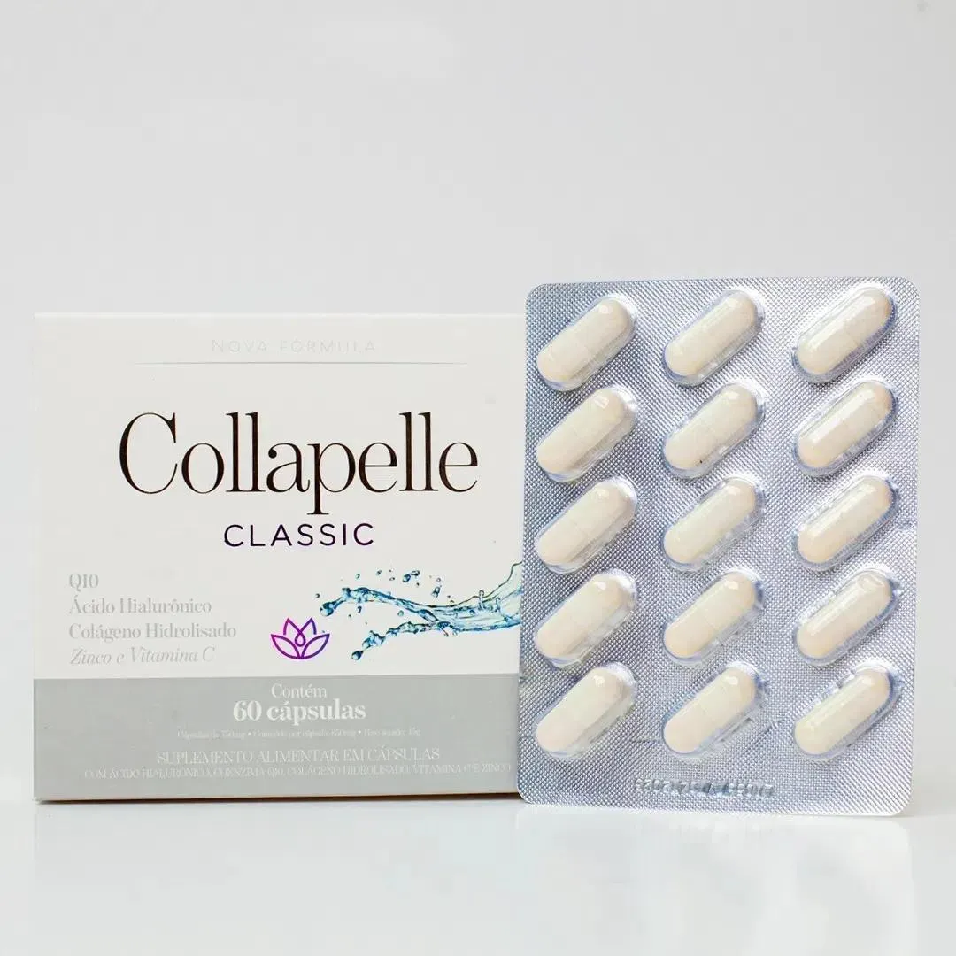 Collapelle Classic é um suplemento alimentar que contém nutrientes que auxiliam na manutenção da pele, cabelo e unhas e na formação do colágeno.