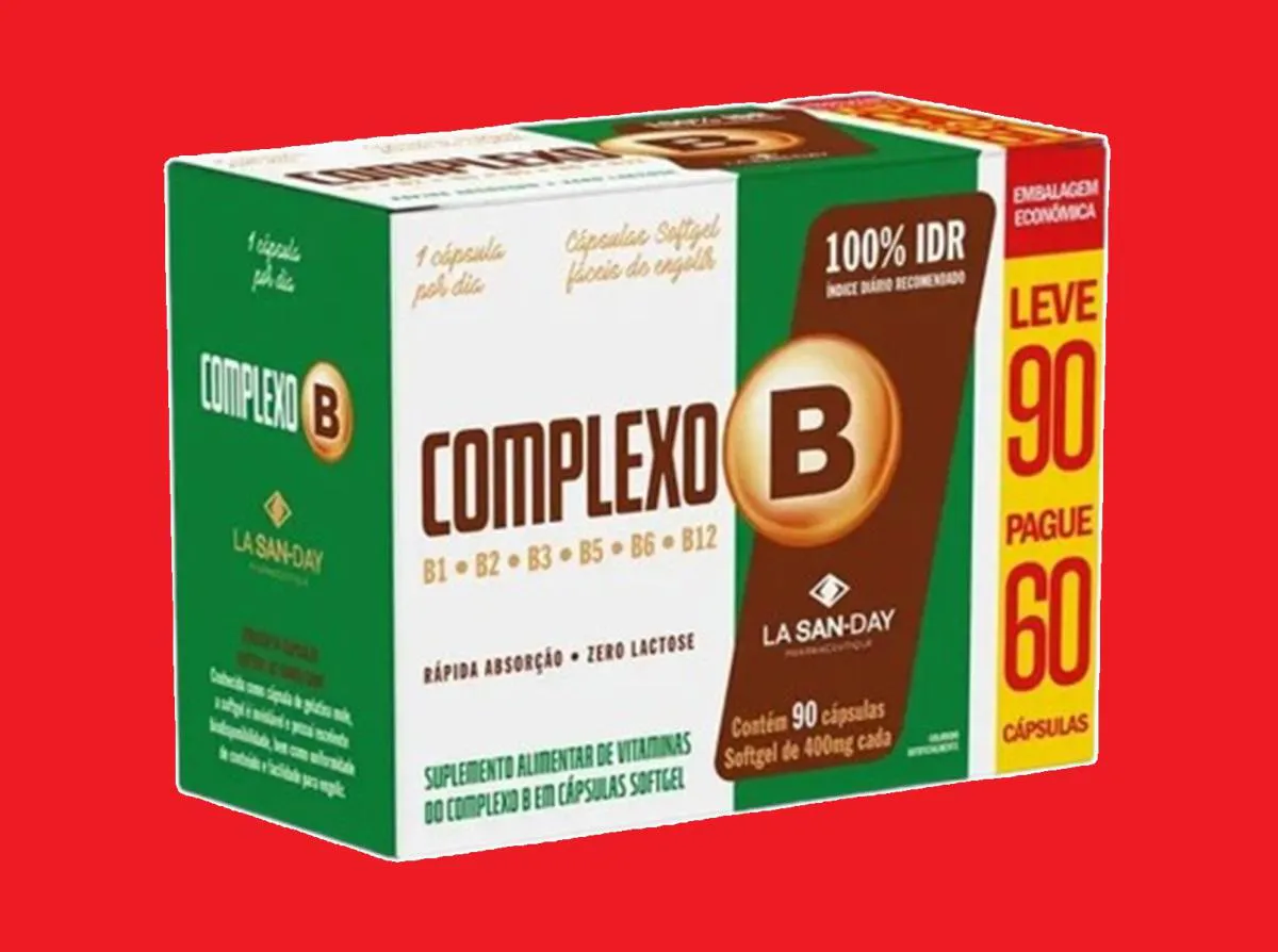 Suplemento Alimentar Complexo B LV90/PG60 Cáps La San-Day fornece um conjunto essencial de vitaminas hidrossolúveis que desempenham um papel fundamental no metabolismo energético, no sistema nervoso e na manutenção do bem-estar geral.