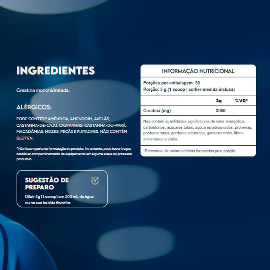 Ingrediente único: Creatina Monohidratada (100%)