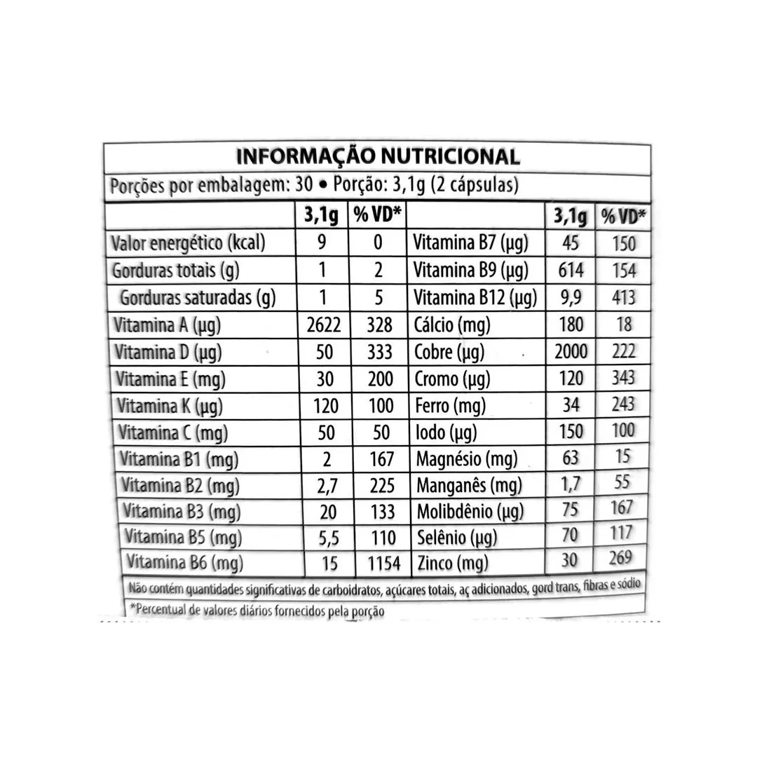 - Contém 13 vitaminas essenciais e 10 minerais em formas altamente biodisponíveis.