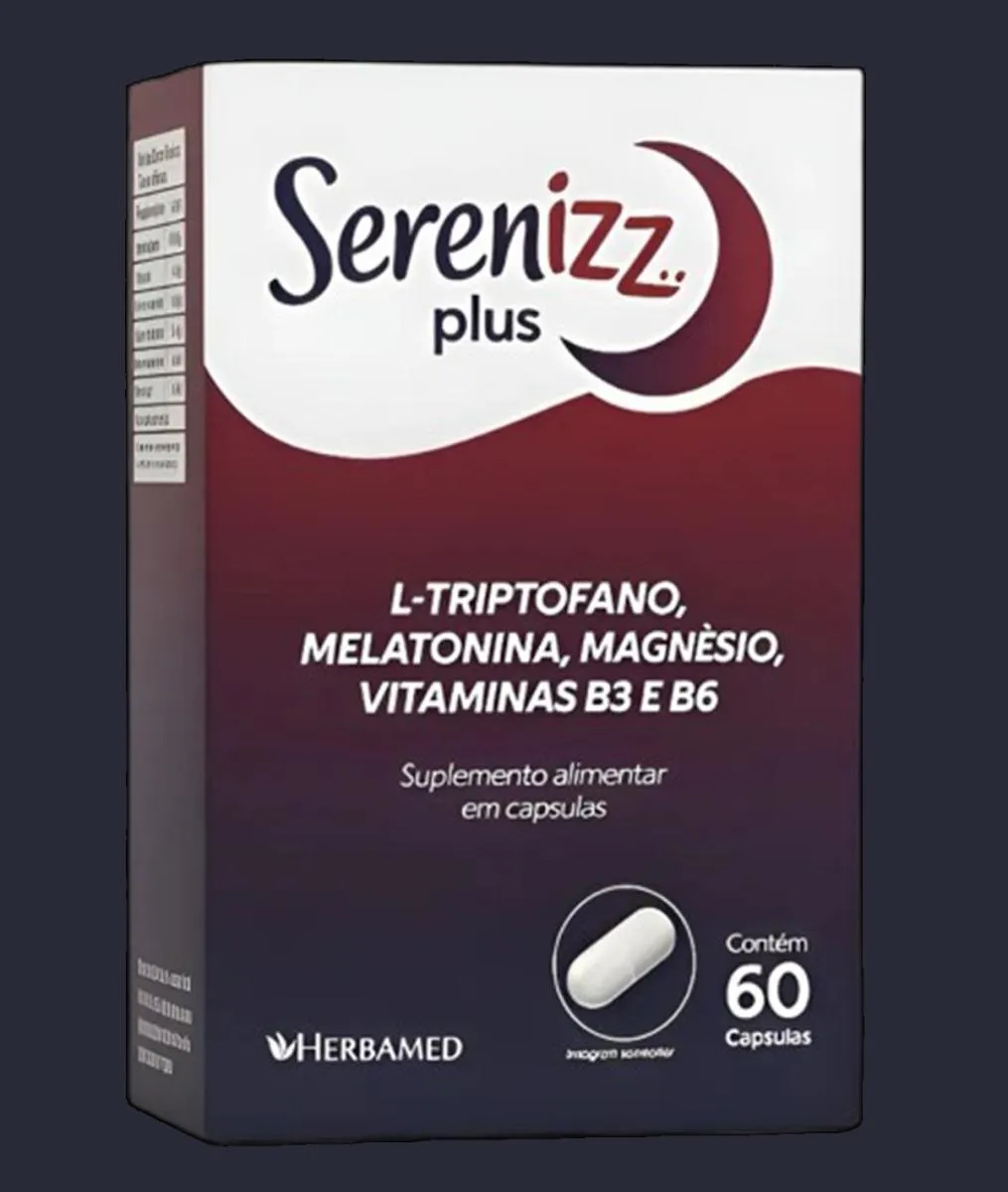 Kit 2 Suplemento Serenizz Plus 60 Cáps - Herbamed Serenizz Herbamed é um suplemento alimentar em cápsulas, formulado com L-triptofano, vitaminas e minerais. Prático para o consumo diário, indicado para uso adulto. Produto não é medicamento. Consumir conforme rótulo. Meramente Ilustrativas. Todas as Informações Divulgadas são de Responsabilidade Exclusiva do Fabricante/fornecedor.