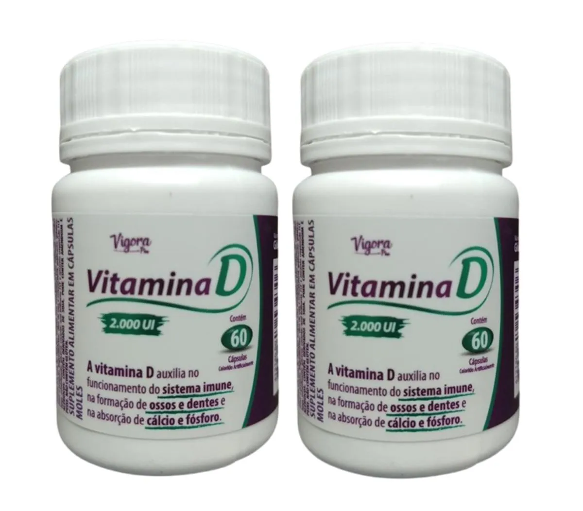 Kit 2 Suplemento Vitamina D 2000ui 60 cápsulas - Vigora Plus