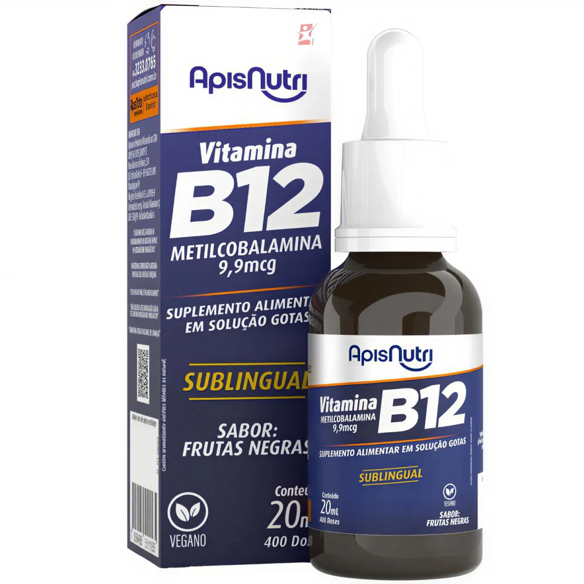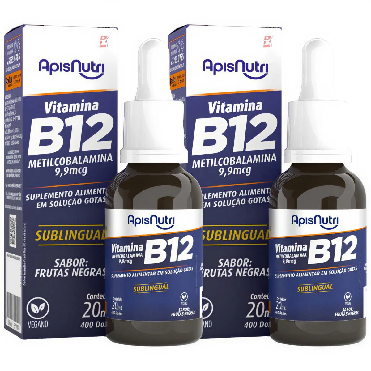Kit 2 Vitamina B12 Metilcobalamina Vegana Concentrada Total 40Ml-800 Doses – Apisnutri