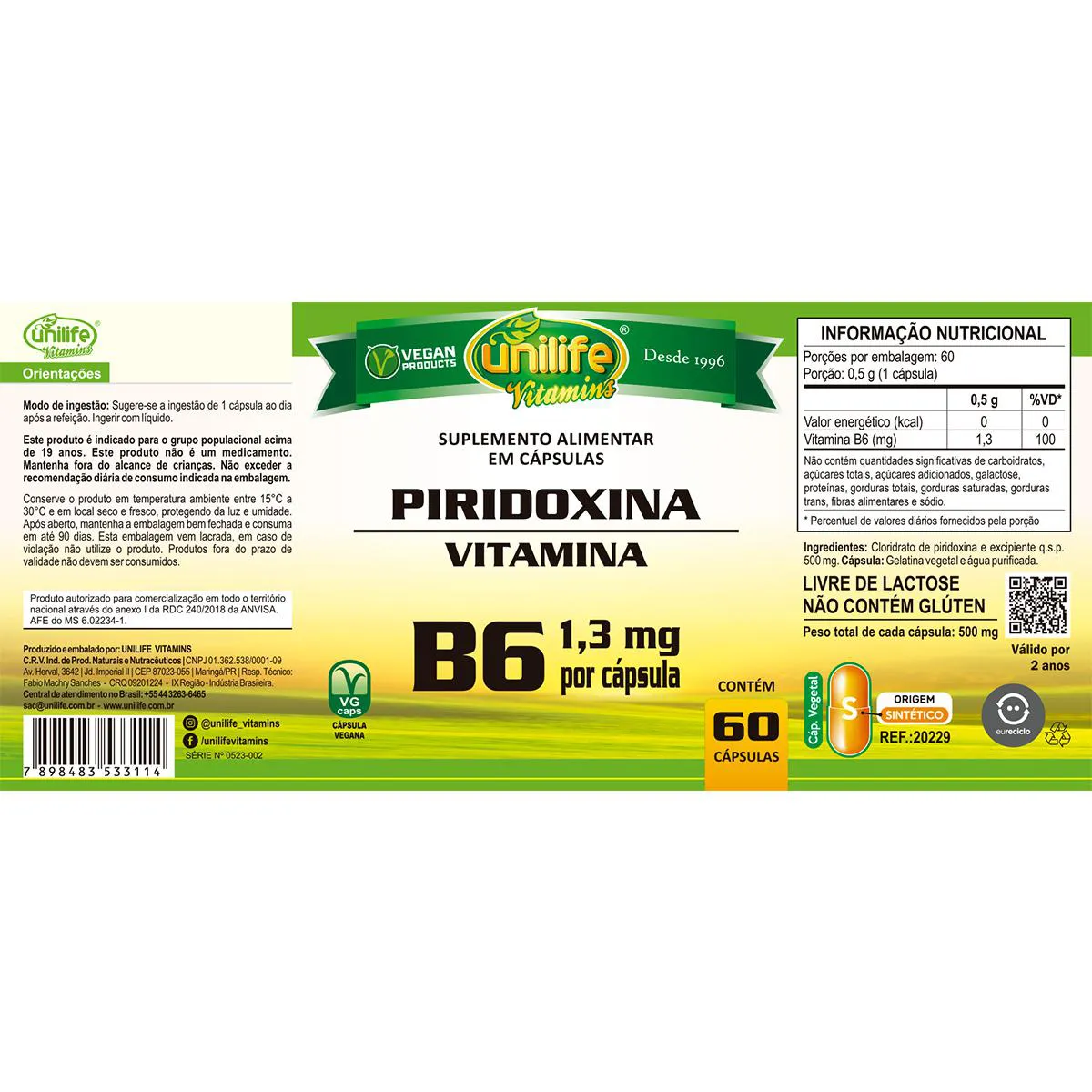Quais os benefícios em acrescentar em minha dieta a vitamina Piridoxina B6 da Unilife?