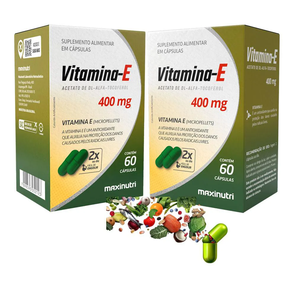 KIT 2 VITAMINA E ACETATO DE DL-ALFA-TOCOFEROL 400MG 60 CáPS MAXINUTRI