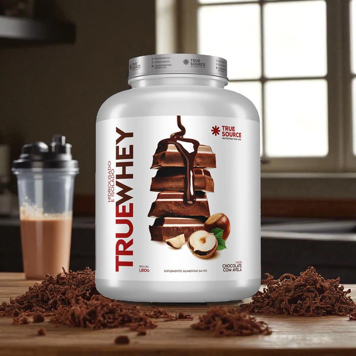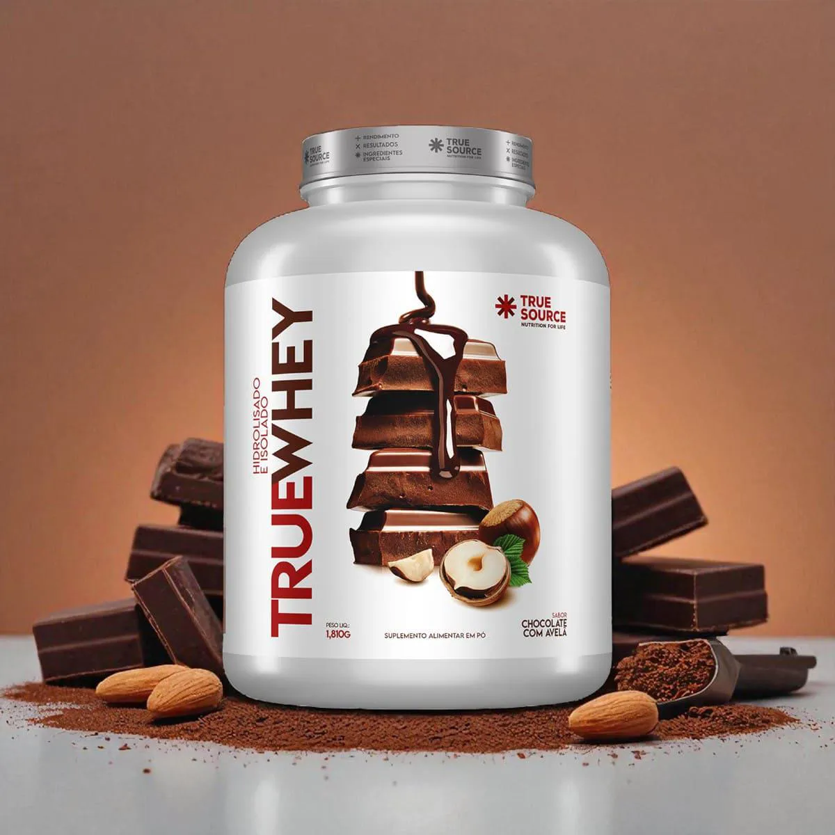 O True Whey Chocolate com Avelã 1,810g é um suplemento proteico “clean label” desenvolvido pela True Source. Ele combina proteínas do soro do leite nos formatos hidrolisado e isolado, oferecendo alta pureza e rápida absorção. A fórmula contém também colágeno Verisol® (2,5g por dose) e é adoçada com stevia, taumatina e maltitol, sem corantes ou adoçantes artificiais.