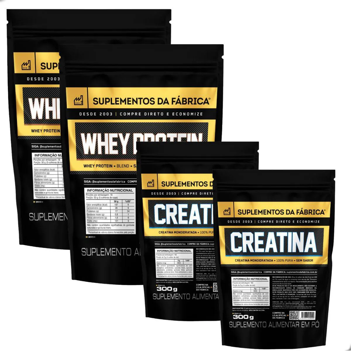 Kit 2 Whey Iso Blend 900G + 2 Creatina 300G Suplemento da Fabrica Baunilha