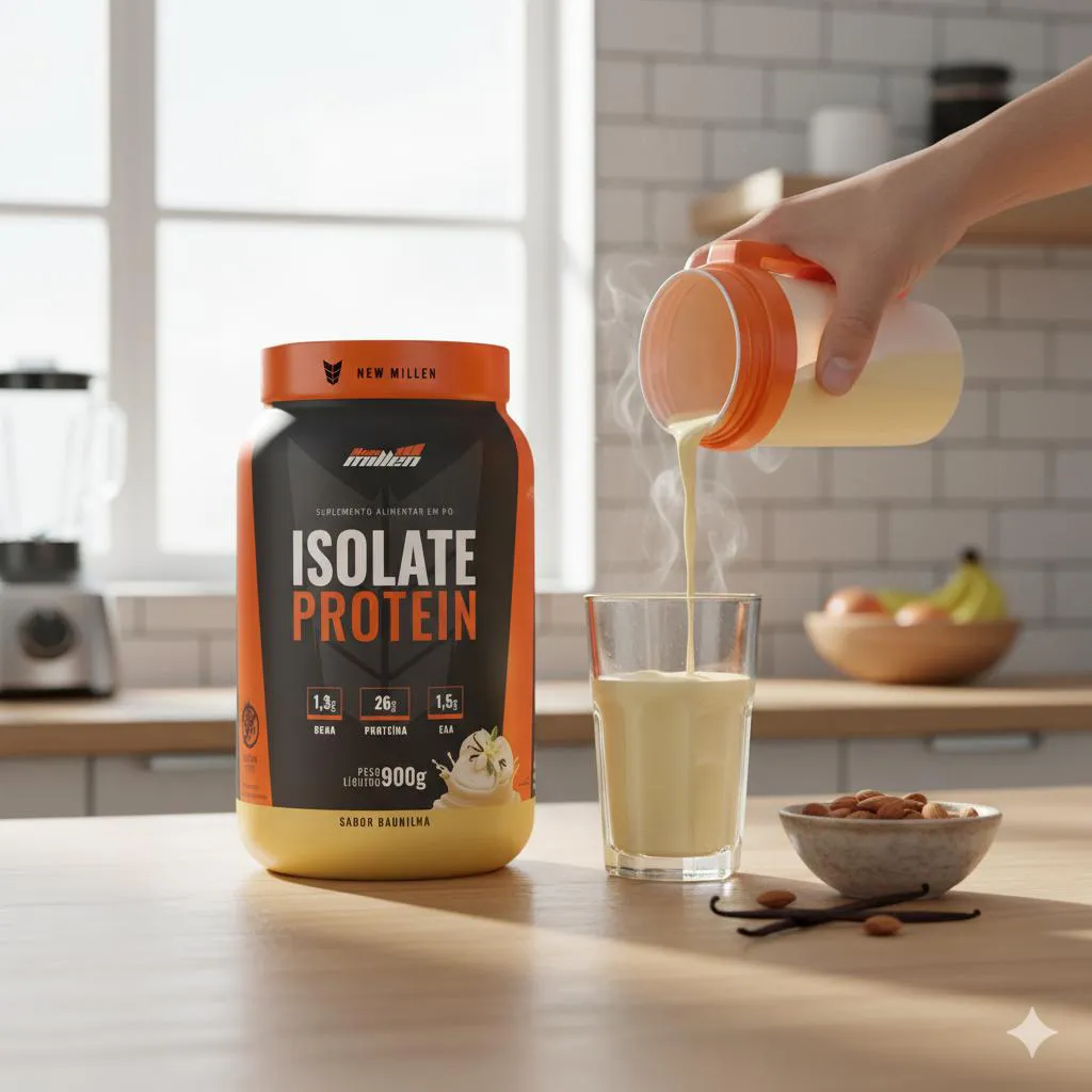 O Isolate Protein é um suplemento proteico inovador, formulado com proteína de alta pureza, livre de lactose, gorduras e açúcares. Composto por aminoácidos essenciais como bcaa e EAAs, apresenta 26g de proteína por porção. Sua composição inclui diversos aminoácidos como L-lisina, L-leucina, L-isoleucina, entre outros, com aroma natural e edulcorado com sucralose.