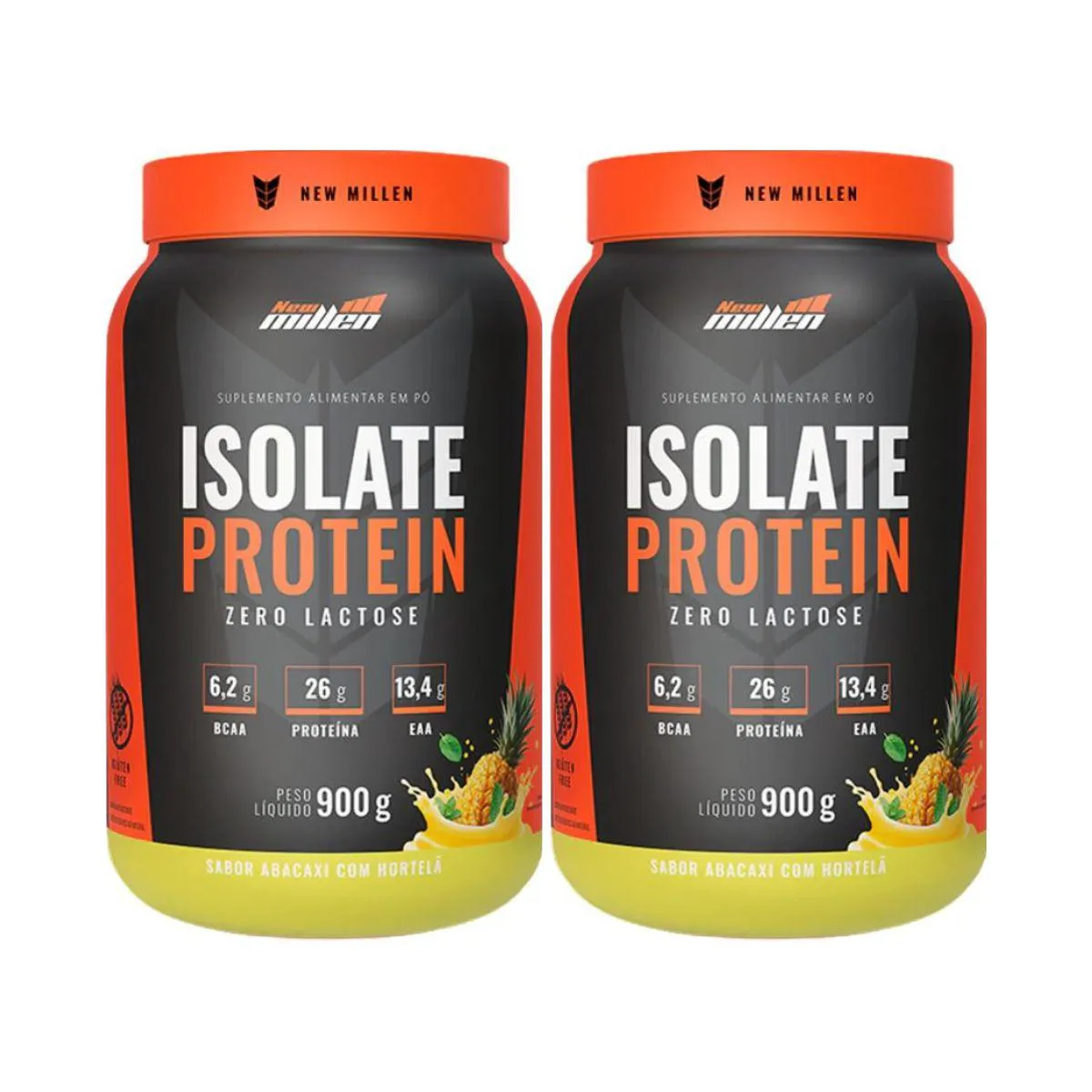 KIT 2 WHEY ISOLADO ZERO LACTOSE ABACAXI COM HORTELÃ 26G DE PROTEÍNA 900G NEW MILLEN