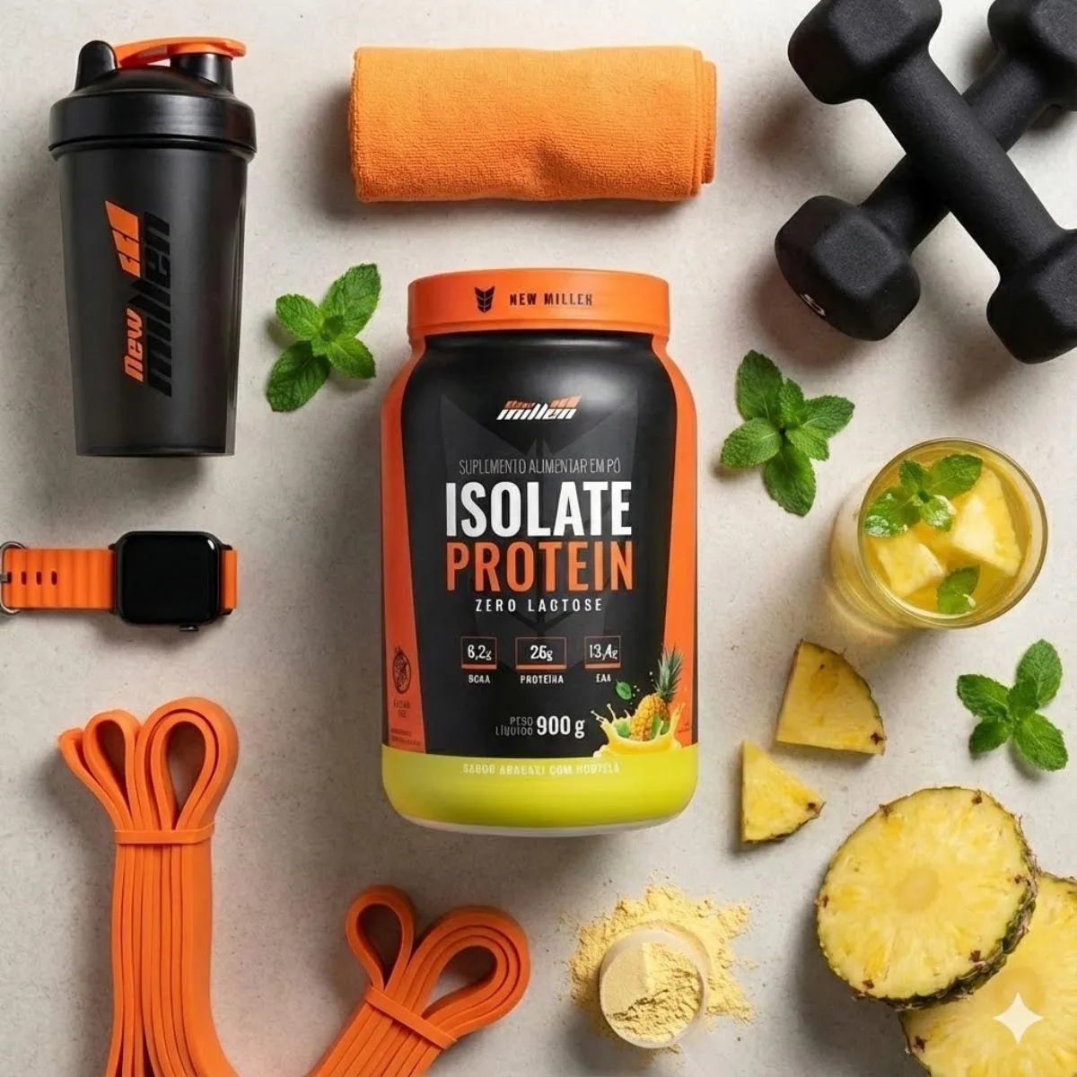 shakes rápidos, vitaminas ou receitas funcionais. A New Millen reforça sua autoridade no mercado ao oferecer um blend exclusivo, pensado para quem preza por variedade e desempenho consistente. O uso é simples: basta diluir a porção recomendada em água ou bebida de preferência até obter uma mistura homogênea. Sua versatilidade permite adaptar o consumo a diferentes perfis e momentos da rotina, sempre com preparo rápido e sabor agradável. Características técnicas: whey protein isolado, zero lactose, 26g de proteína por porção, sabor Abacaxi com Hortelã, embalagens de 900g cada, alta solubilidade e textura leve. Estoque limitado. Aproveite o preço especial e garanta o seu agora.