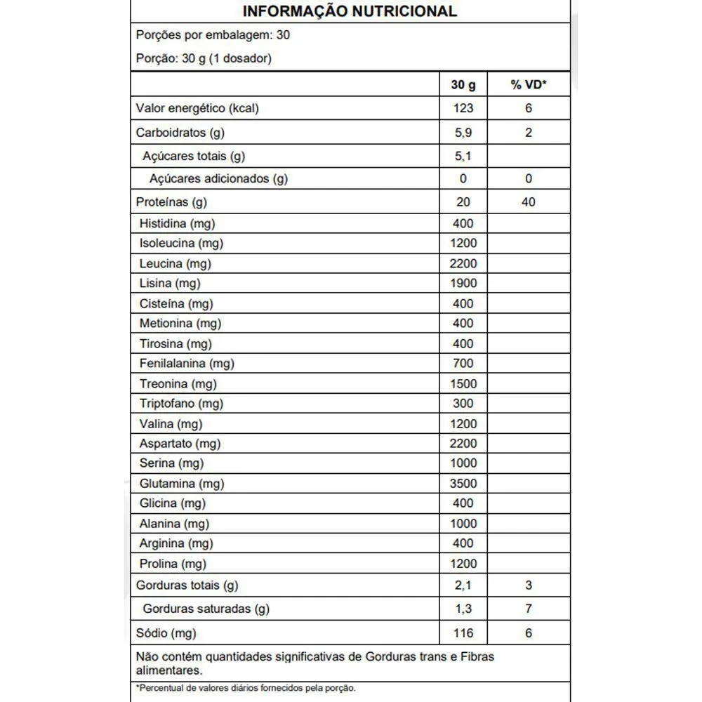 CENTEIO, CEVADA, AVEIA, OVOS, AMENDOIM, AMÊNDOA, AVELÃS, CASTANHADE-CAJU E PISTACHES. CONTÉM LACTOSE. CONTÉM GLÚTEN.Modo de preparo: Adicione uma porção de 1 dosador (30 g) de Whey Protein