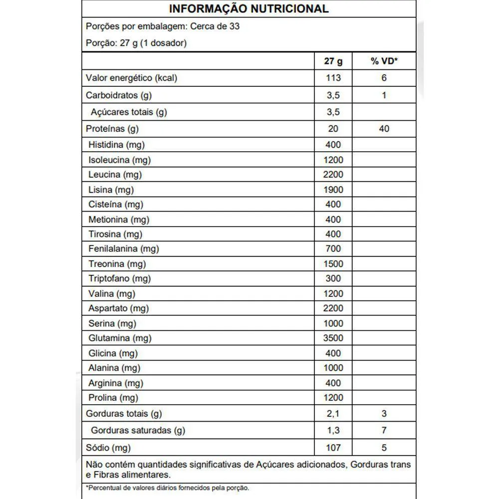 CONTÉM GLÚTEN.Modo de preparo: Adicione uma porção de 1 dosador (27 g) de Whey Protein