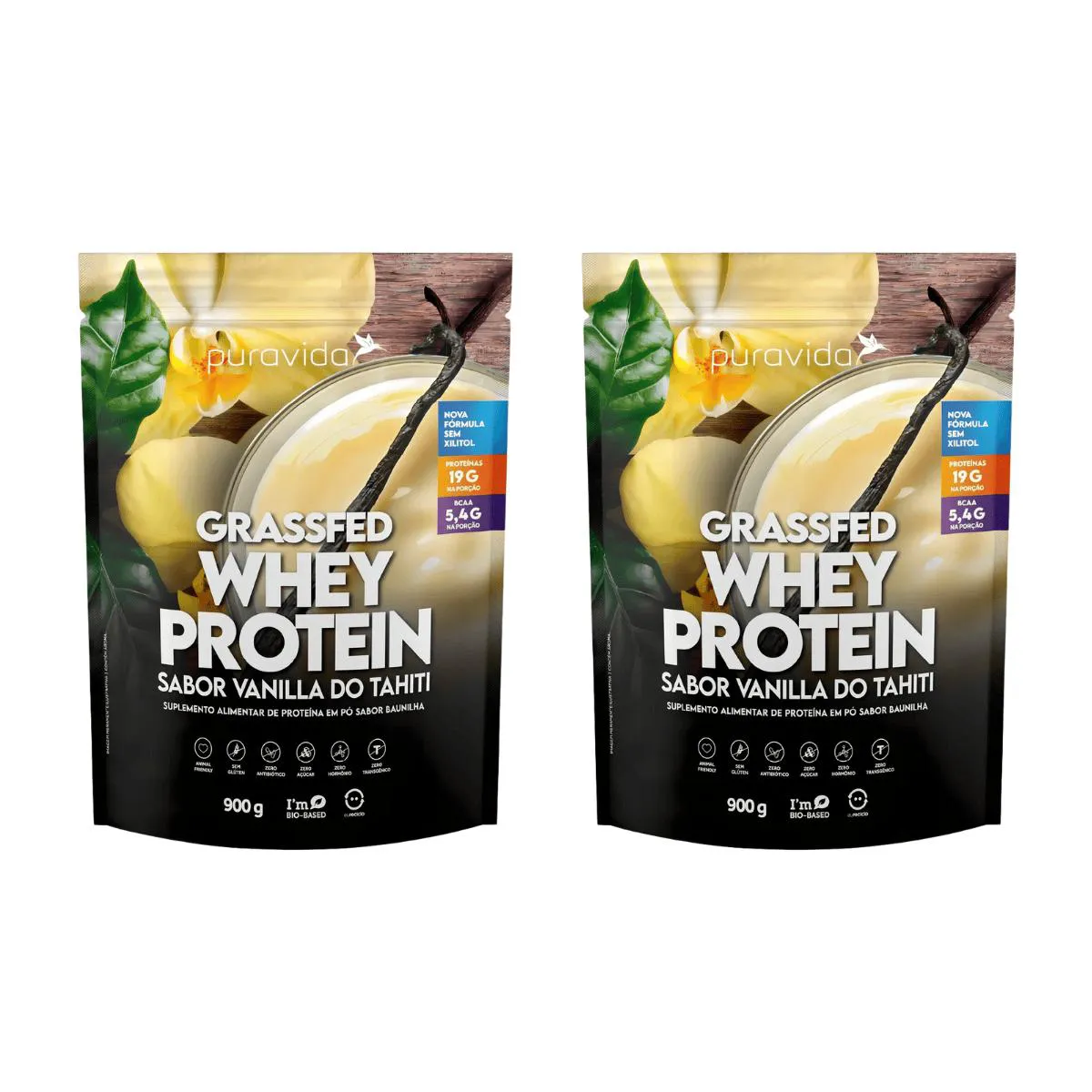 Kit 2 Whey Protein Grassfed 900G Puravida Vanilla
