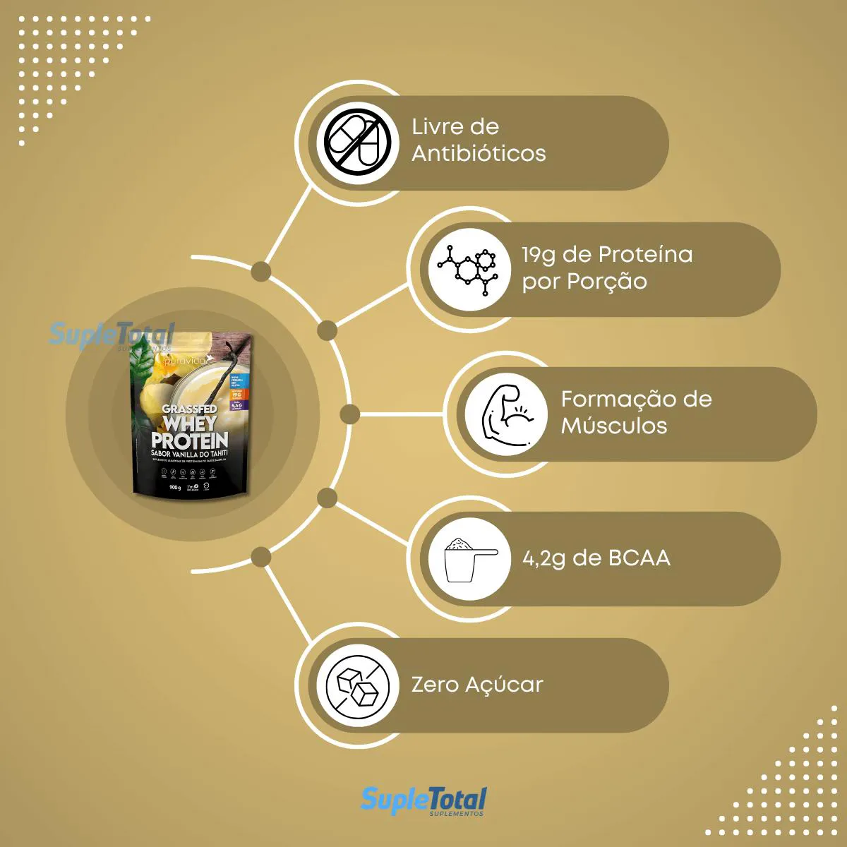 A palavra proteína deriva de "proteios", de origem grega. Seu significado original é de fundamental importância. Proteína é matéria-prima de síntese, representando 20% da composição do nosso organismo. São “tijolos” essenciais para que o organismo obtenha aquilo que precisa para estruturar sua complexa estrutura fisiológica. O colágeno da pele e dos ossos é sintetizado principalmente a partir das proteínas (+ vitaminas e minerais) que o organismo obtém através da nutrição. O mesmo pode ser dito em relação aos músculos. De proteína são feitas as enzimas digestivas e sistêmicas, responsáveis por milhares de reações necessárias à saúde. Deste modo, não é difícil concordar com sua origem etimológica: Proteios - "de importância fundamental". whey protein GRASSFED Dentro de nosso departamento de pesquisa e qualidade da Puravida, concluímos que o padrão ouro do whey protein de qualidade internacional é justamente o que escolhemos para estar dentro da embalagem que leva o selo do beija-flor. O resultado tem aspecto semelhante ao leite em pó, porém mais suave e delicado. O WHEY PROTEIN GRASSFED Puravida - SABOR chocolate BELGA é uma proteína leve e de alta qualidade, que agora conta com o nosso adoçante ZERO na formulação. O melhor adoçante natural saudável de nova geração, desenvolvido com três extratos nobres: a stevia reb A (new generation), a taumatina premium extract e o eritritol. Seu sabor delicioso provém do cacau nobre produzido com tecnologia belga, enriquecido com óleo essencial de chocolate. É o gostinho do achocolatado de infância, mas com ZERO açúcar e xylitol. Não contém quaisquer aditivos ou corantes artificiais. De fácil digestão e assimilação, o seu uso e de qualidade no mundo moderno. É muito prático, propiciando uma nutrição rápida. O WHEY PROTEIN GRASSFED Puravida - SABOR VANILLA - é uma proteína leve e de alta qualidade, que agora conta com o nosso adoçante ZERO na formulação. O melhor adoçante natural saudável de nova geração, desenvolvido com três extratos nobres: a stevia reb A (new generation), a taumatina premium extract e o eritritol. Seu sabor delicioso provém do extrato orgânico de fava de baunilha, de qualidade nobre e incrivelmente aromática. A combinação ficou surpreendente, com textura sedosa, notas florais adocicadas e ZERO açúcar, sem xilitol. Não contém quaisquer aditivos ou corantes artificiais. O WHEY PROTEIN GRASSFED Puravida é uma proteínaleve e de alta qualidade. É realmente puro, sem aditivo, corante ou aromatizante artificial. Além de oferecer um sabor suave e agradável, e uma textura sedosa, combinando facilmente com diversas receitas e shakes. O WHEY PROTEIN GRASSFED Puravida - SABOR FRAMBOESA - é uma proteína leve e de alta qualidade, que agora conta com o nosso adoçante ZERO na formulação. O melhor adoçante natural saudável de nova geração, desenvolvido com três extratos nobres: a stevia reb A (new generation), a taumatina premium extract e o eritritol. Seu sabor delicioso provém de framboesas orgânicas liofilizadas em uma tecnologia que preserva todo seu aroma e frescor. A combinação perfeita do azedinho de uma berry silvestre com o cremoso do Whey, mas com ZERO açúcar, sem xilitol. Não contém quaisquer aditivos ou corantes artificiais.