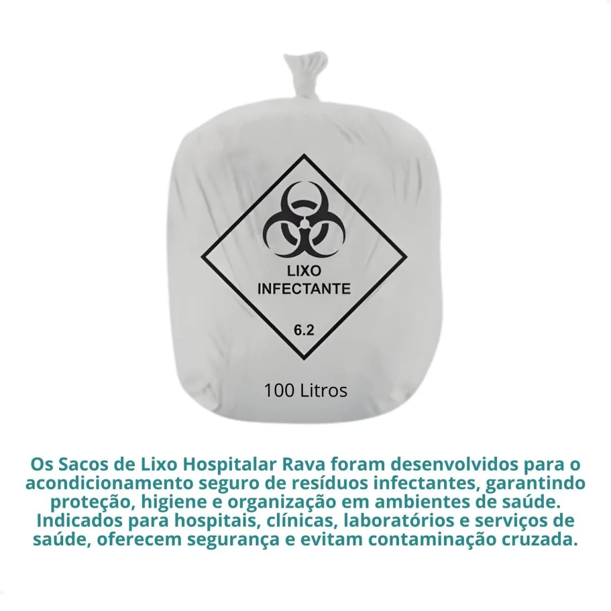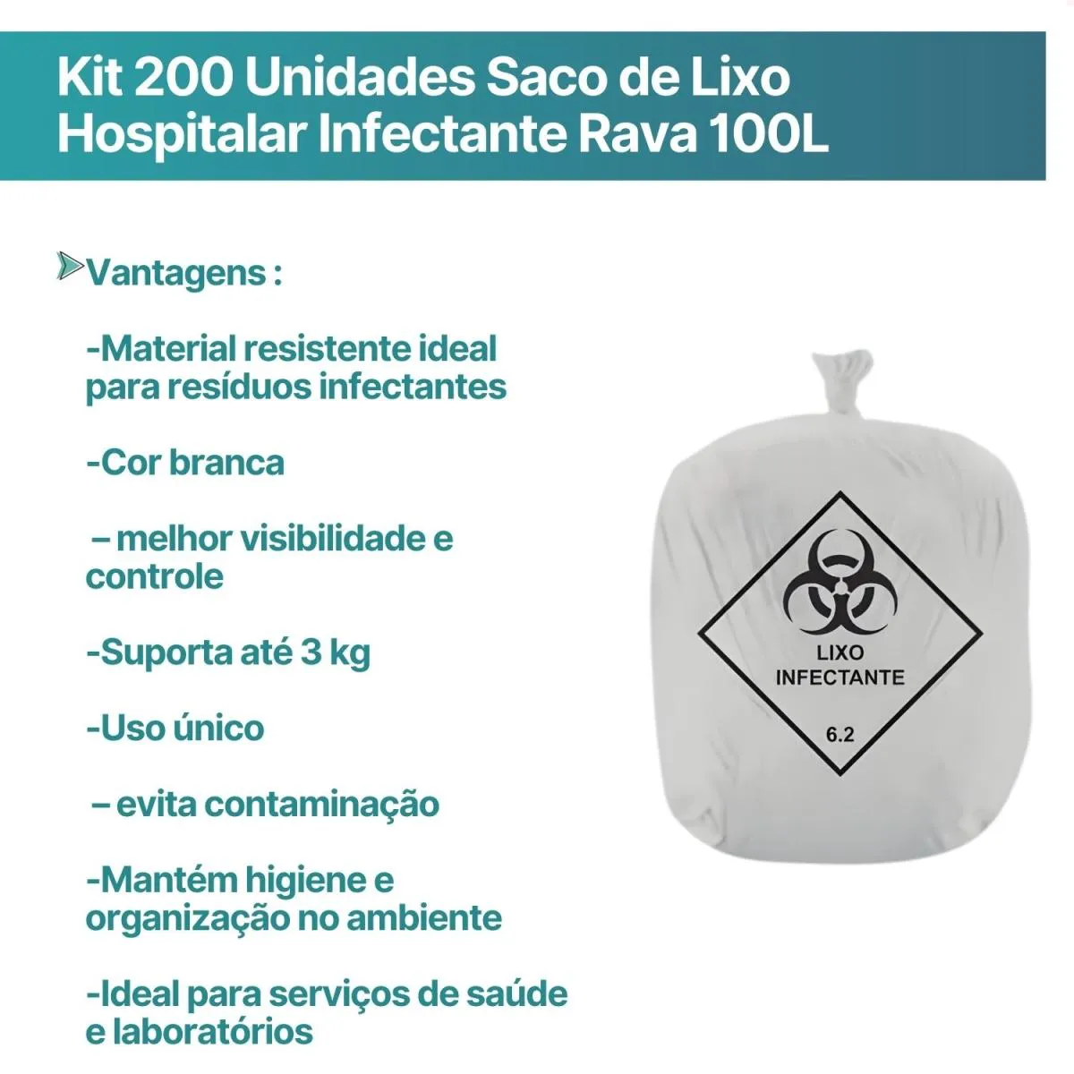 Kit 200 Unidade Saco de Lixo Hospitalar Infectante Rava 100L