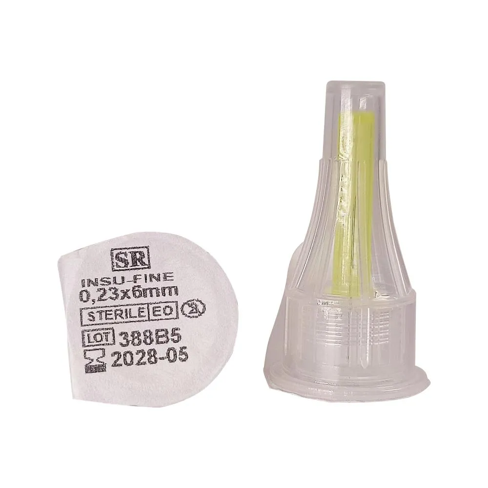 Agulha Insu Fine - Agulhas para Caneta de Insulina 6mm x 32G Caixa/Kit com 200 unidades Indicação: As agulhas para caneta de insulina são indicadas para administração multidose de insulina no corpo. Possuem bisel trifacetado siliconizado, permitindo injeções mais suaves e confortáveis. Descrição: