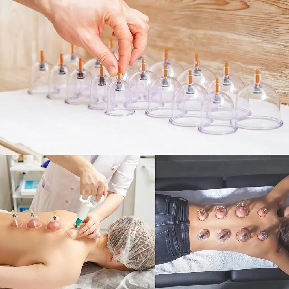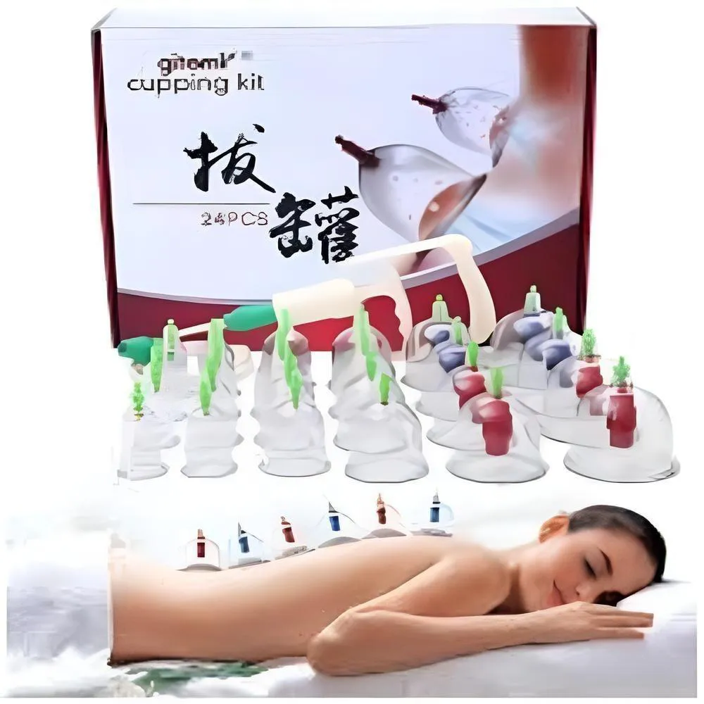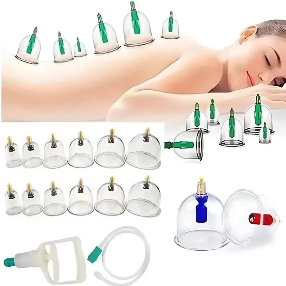 O que é e para que serve o Kit 24 Ventosas Ventosaterapia Copos Massoterapia Chines Acumputura Terapia Succao Estetica Com Bomba Manual?