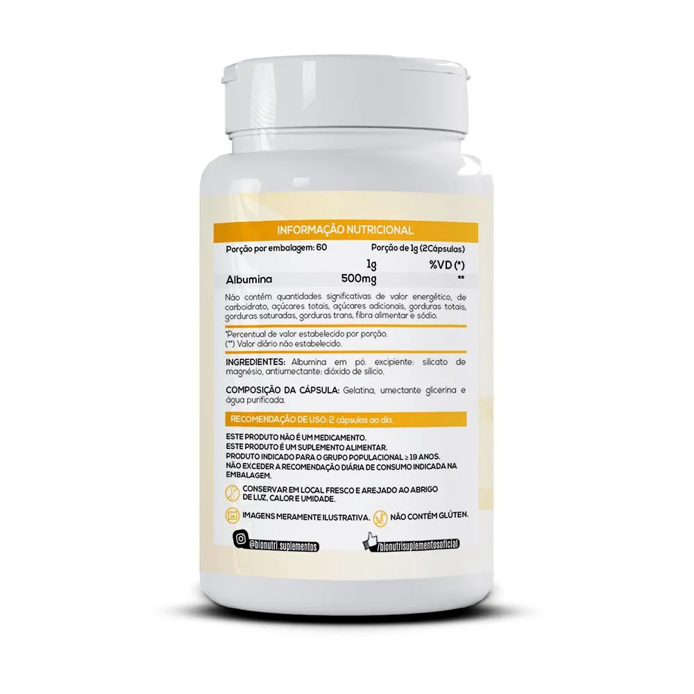 Kit 2x Albumina 100% Proteina Pura 500mg 120 cápsulas - Bionutri.