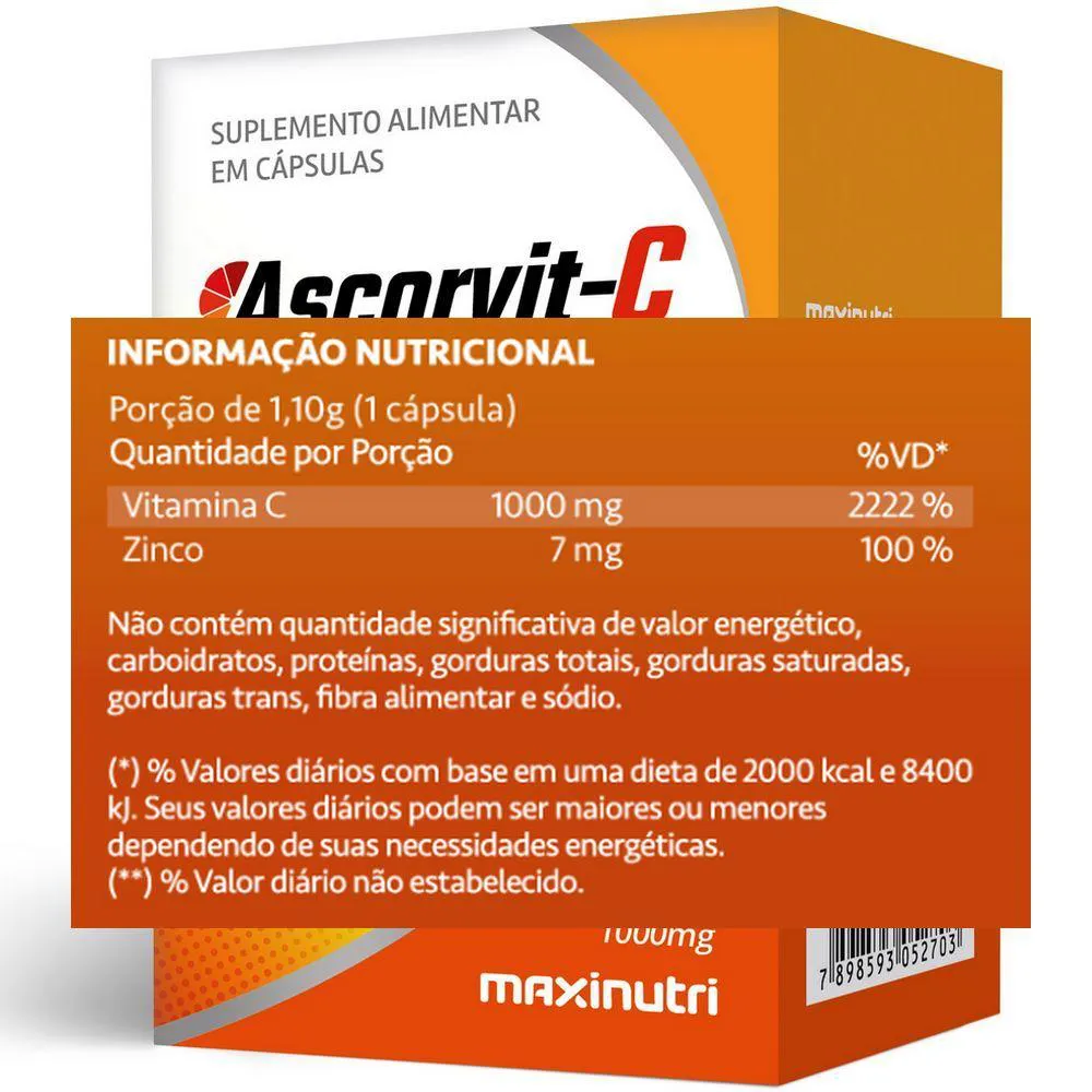 KIT 2X ASCORVIT C 1000MG - VITAMINA C + ZINCO - 30 CáPSULAS - MAXINUTRI