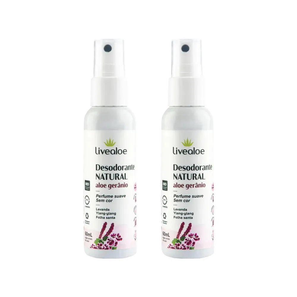 2x Desodorante Natural Aloe Gerânio 60ml Livealoe (2 unidades)