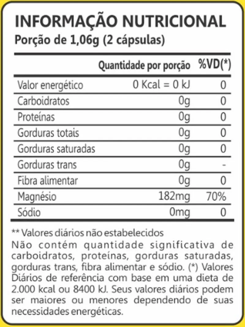 - Suplemento com Di-Magnésio Malato e Ácido Málico.