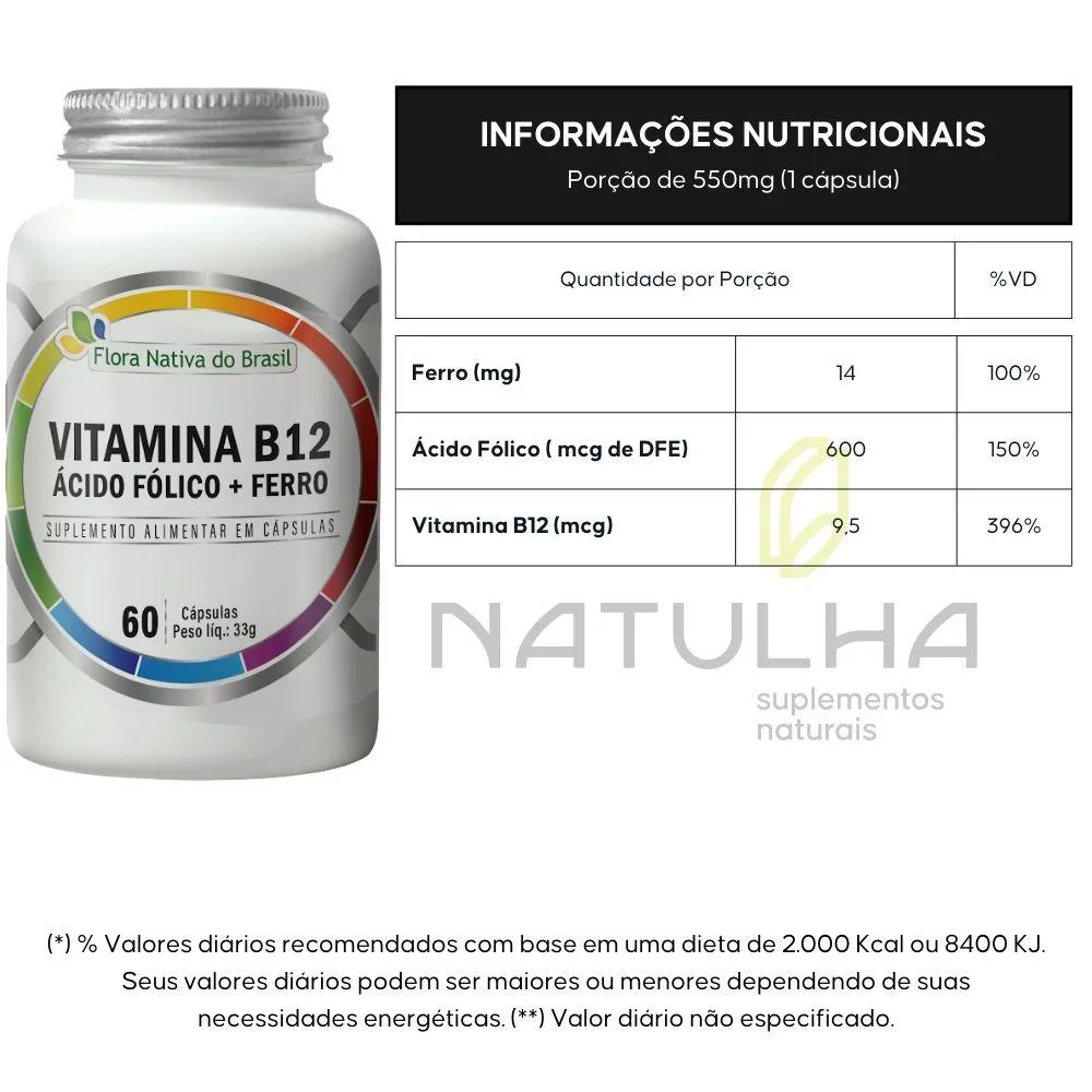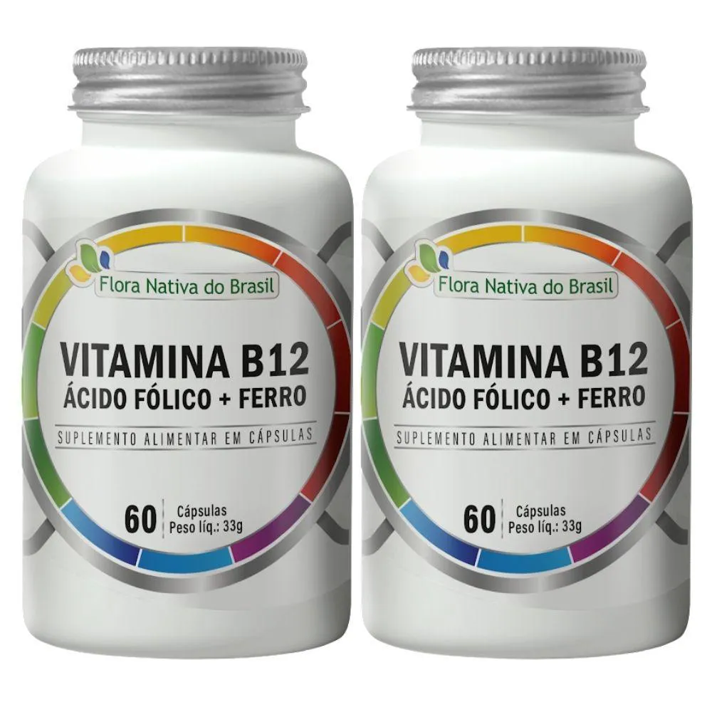 Kit 2x Ferro + Ácido Fólico + B12 60 cápsulas - Flora Nativa