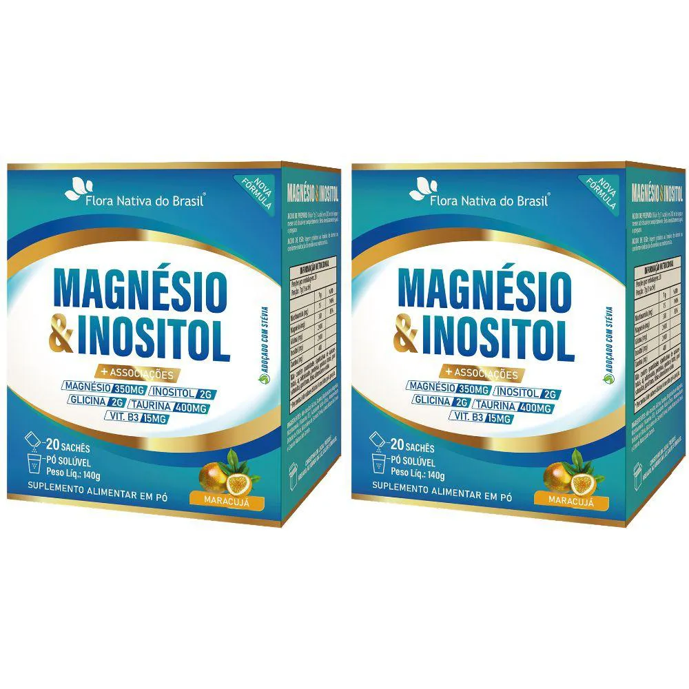 KIT com 2 unidades de Magnésio com Inositol, Glicina, Taurina e vitamina B3 da marcaFlora Nativa com 20 sachês cada.
