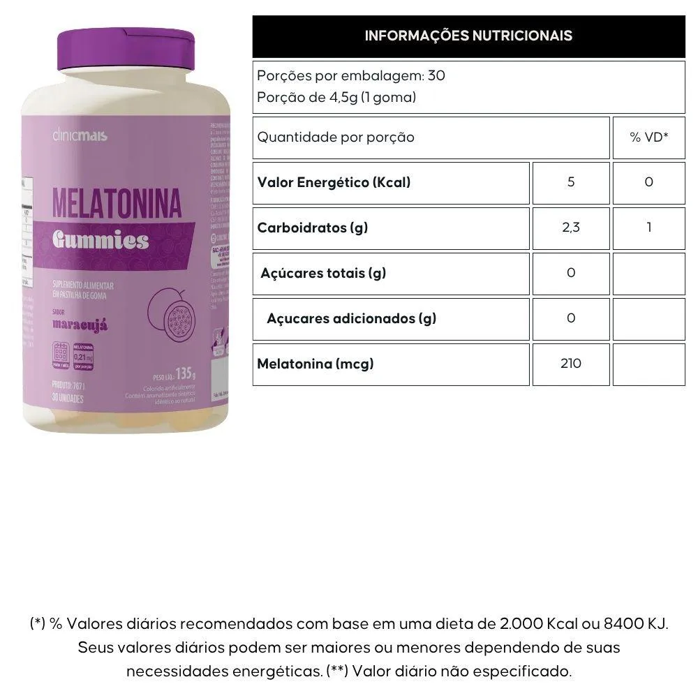 KIT com 2 unidades de Melatonina Gummie da marca Clinicmais com 30 gomas cada.