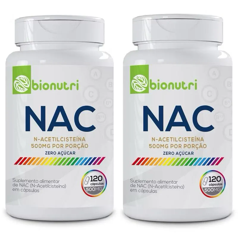 Kit 2 Potes NAC N-Acetilcisteína 120 cápsulas 500mg Cada