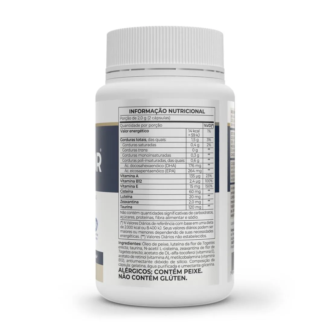 OMEGAFOR VISION® Vitafor, é um suplemento alimentar à base de óleo de peixe (fonte de Ômega 3-TG), com associação de: vitaminas, cisteína, taurina, luteína, zeaxantina e a vitamina A auxiliando na saúde da visão, que atuam de forma sinérgica em sua composição somados aos benefícios do ômega-3. O suplemento de ômega 3 tem em sua formulação os ácidos graxos EPA e DHA. O EPA é um ácido essencial geralmente conhecido por sua ação no sistema cardiovascular. Enquanto o DHA é um ácido graxo essencial geralmente conhecido por sua ação no sistema cognitivo Estudos sugerem que o ômega pode auxiliar no alívio aos sintomas do olho seco. Nosso Omegafor ® Vision Vitafor se apresenta na forma TG (triglicerídeos), para facilitar a absorção do corpo. É enriquecido com vitaminas, cisteína, taurina, luteína, zeaxantina e a vitamina A auxiliando na saúde da visão, que atuam de forma sinérgica em sua composição somados aos benefícios do ômega-3. Omegafor ® Vision Vitafor é um produto que atende aos mais altos graus de exigência do mundo em pureza, potência e frescor. A vitamina e é um antioxidante que auxilia na proteção de danos causados pelos radicais livres. As vitaminas A e B12 auxiliam no funcionamento do sistema imune. A vitamina B12 auxilia na formação de células vermelhas no sangue, no metabolismo dos carboidratos, proteínas, gorduras, da homocisteína e no processo de divisão celular. A vitamina A auxilia na visão, no metabolismo do ferro, no processo de diferenciação celular e contribui para a manutenção da pele e de mucosas. Alguns peixes são contaminados por metais pesados – metais que foram lançados nas águas - ao ingerir peixes contaminados você leva estes metais pesados para seu corpo, podendo comprometer sua saúde. Na escolha do seu Ômega é essencial procurar por pureza e isenção de metais pesados na composição. Omegafor Vision possui certificado internacional IFOS ™, que mede a pureza do produto e encontra-se livre de metais pesados.