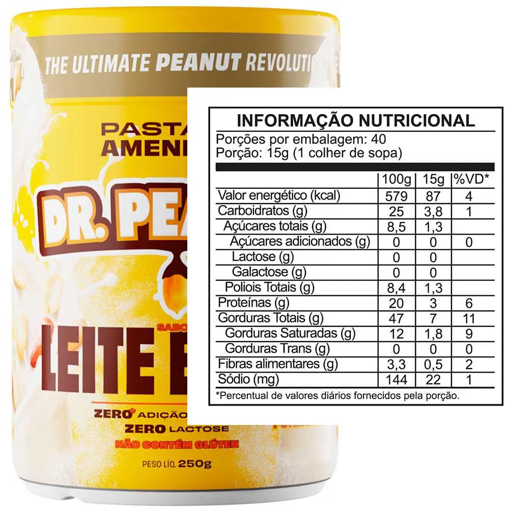Kit 2x Pasta de Amendoim com Whey Protein - Zero Lactose - (250g) - Dr Peanut Oficial Leite em Pó