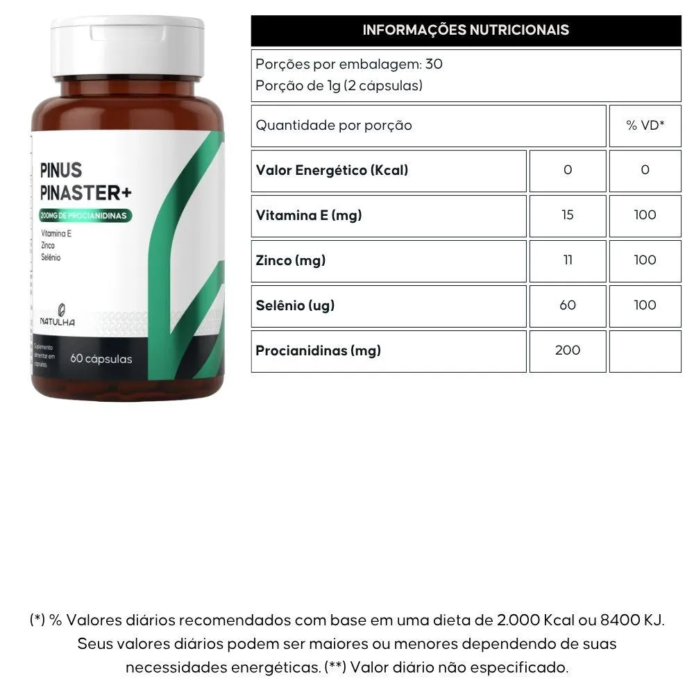 Kit 2X Pinus Pinaster com Vitamina E, Zinco e Selênio 60 Cápsulas - Natulha