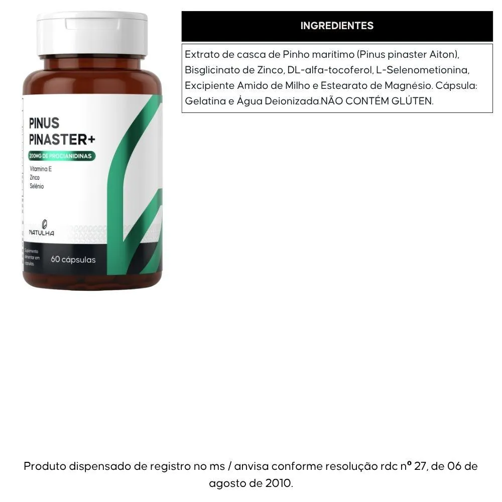 - Suplemento com extrato de Pinus pinaster.