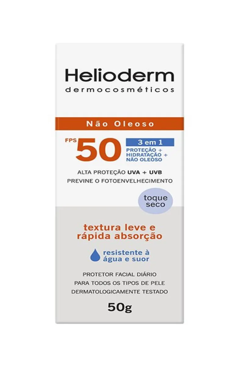 tipos de pele, Helioderm Suncare FPS 50 oferece proteção contra os raios UVA e UVB, de forma a ajudar a prevenir o envelhecimento precoce da pele. Possui textura suave e de rápida absorção, sem deixar a sua