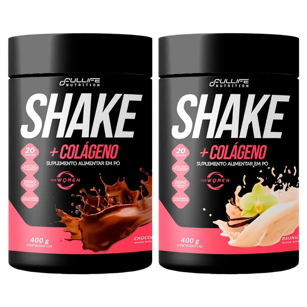 Kit 2X Shake Substituto de Refeição Zero Açúcar + Colágeno 400G - Fullife Baunilha e Chocolate