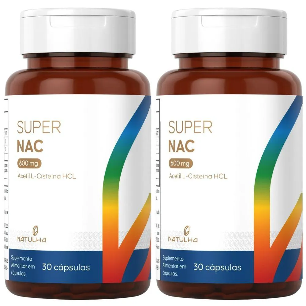 KIT com 2 unidades do Super NAC (Acetilcisteina HCL) 600mg da marca Natulha com 30 Cápsulas cada.