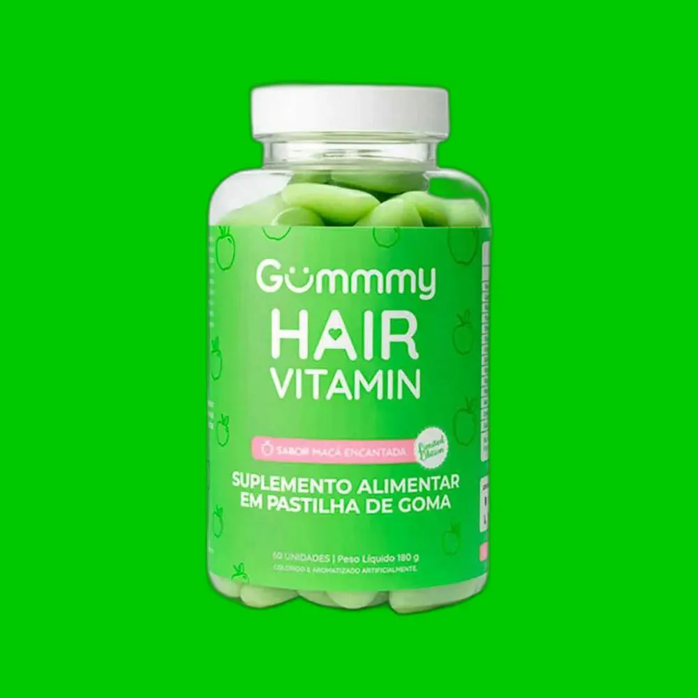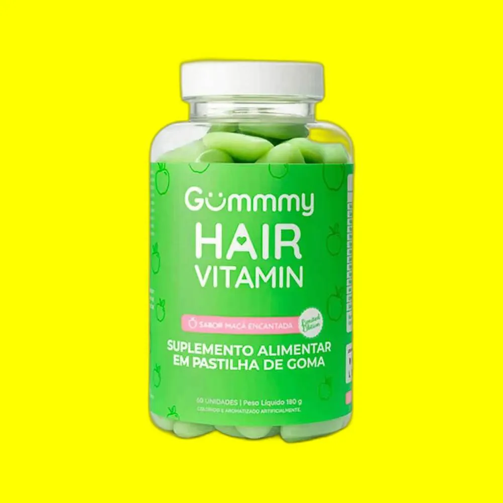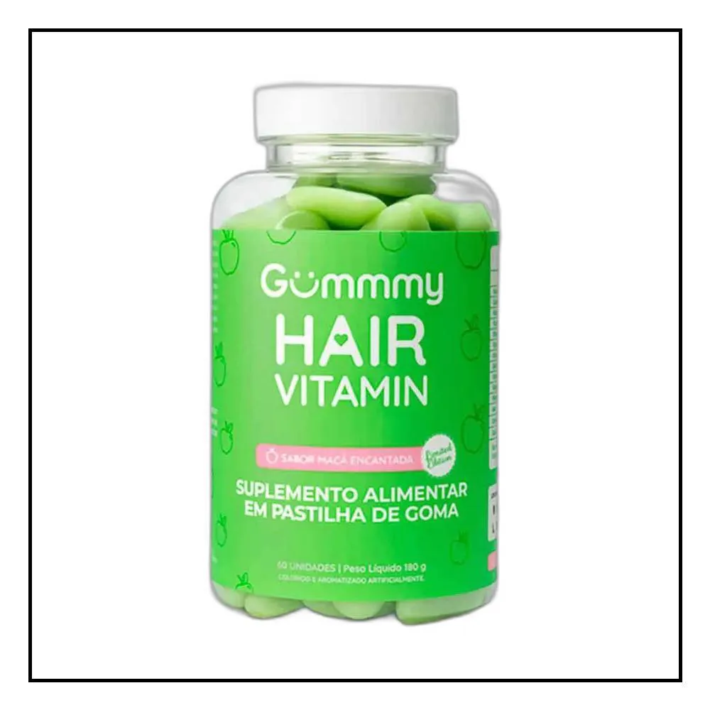 O Kit 2X Suplemento Hair Vitamin Maçã Verde 60 U - Gummy é um suplemento alimentar em formato de goma mastigável, sabor maçã verde, que fornece uma combinação de vitaminas e minerais essenciais para a saúde dos cabelos, pele e unhas. Seu objetivo principal é complementar a alimentação, ajudando a obter vitaminas, minerais e outros componentes indispensáveis para o correto funcionamento do organismo, contribuindo especificamente para o fortalecimento dos fios, melhora da elasticidade da pele e fortalecimento das unhas.
