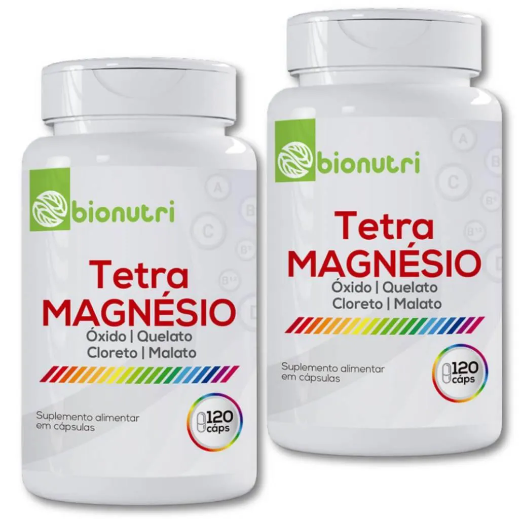 Kit 2x Tetra Magnésio 4 em 1 Óxido Quelato Cloreto E Malato 360cáps Bionutri Energia Memória