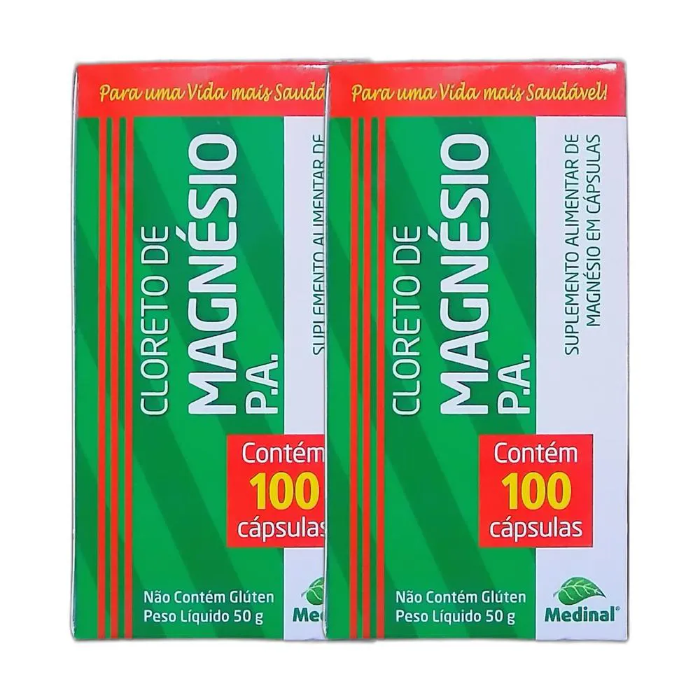 Kit 2x vitamina Cloreto Magnésio P.A. 100 cps - Medinal Porção: