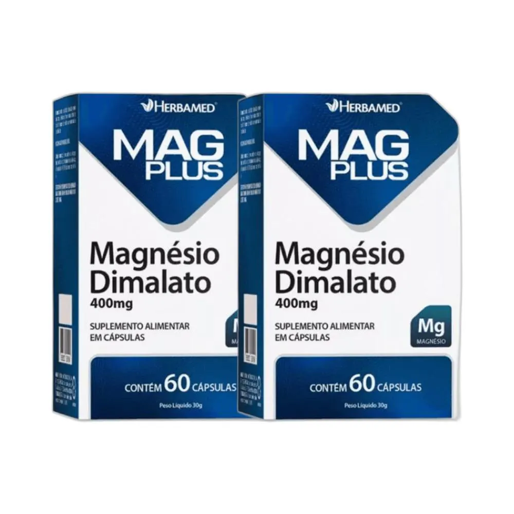 Kit 2x vitamina Magnésio Dimalato 400mg 60 cps - HERBAMED Porção:
