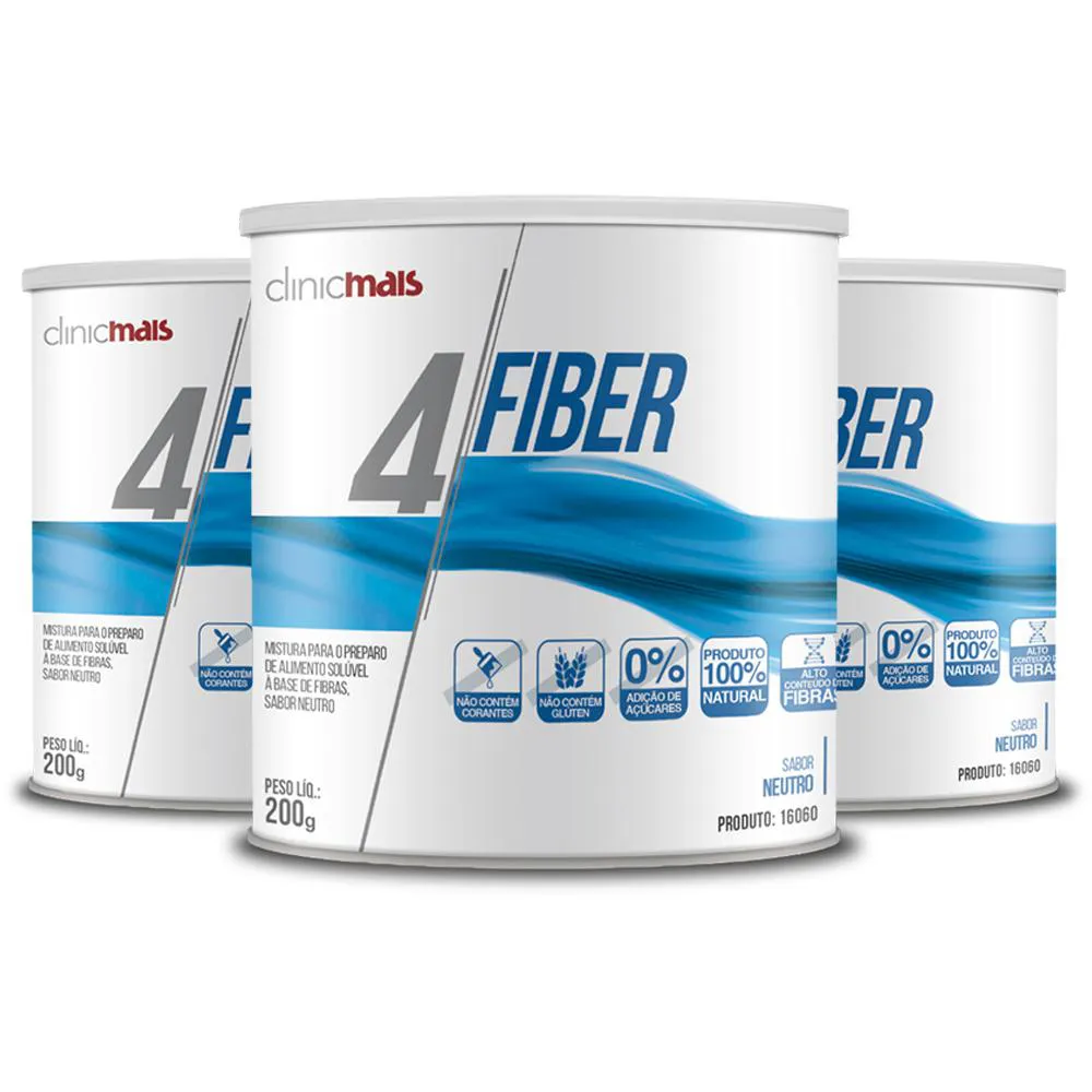 Kit 3 4 Fiber Fibras Solúveis Clinicmais 200G Neutro